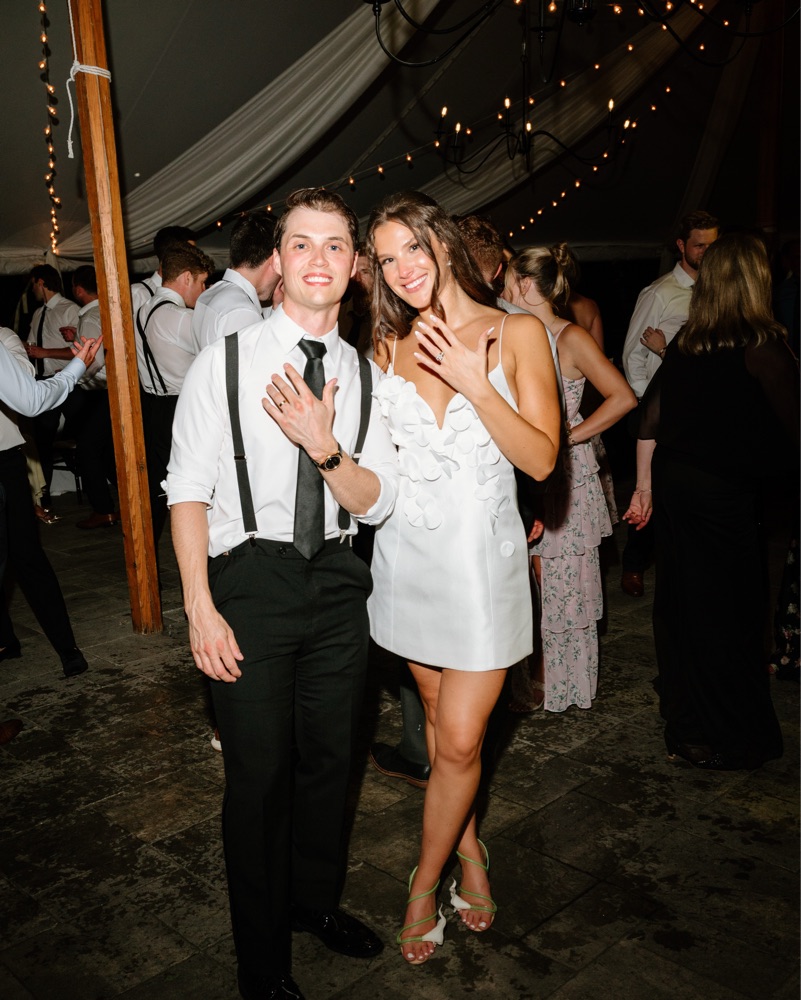 Worn once for second dress @ my wedding!! Feminine and floral, the Isla Mini Dress is an elegant occasion option. With 3D flower appliqué, this stunning silhouette is complete with barely there straps, a sweetheart neckline, and a slight flaring at the hem. DRY CLEAN REQUIRED FOR THIS ITEM