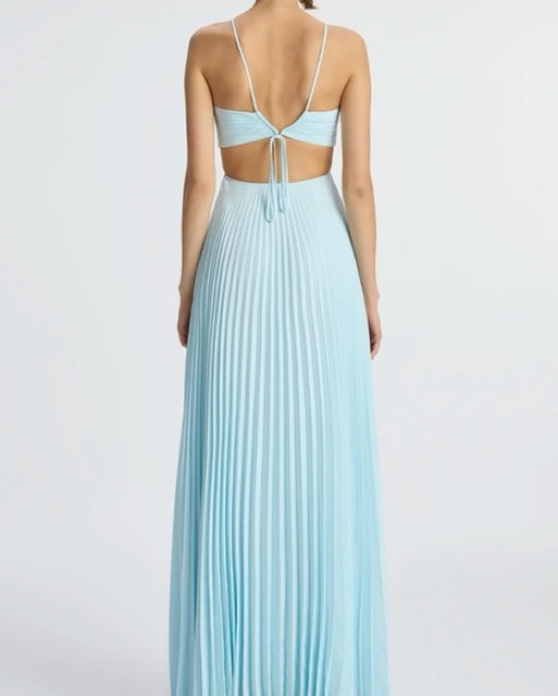 ALC Moira satin pleated maxi dress light blue size 2