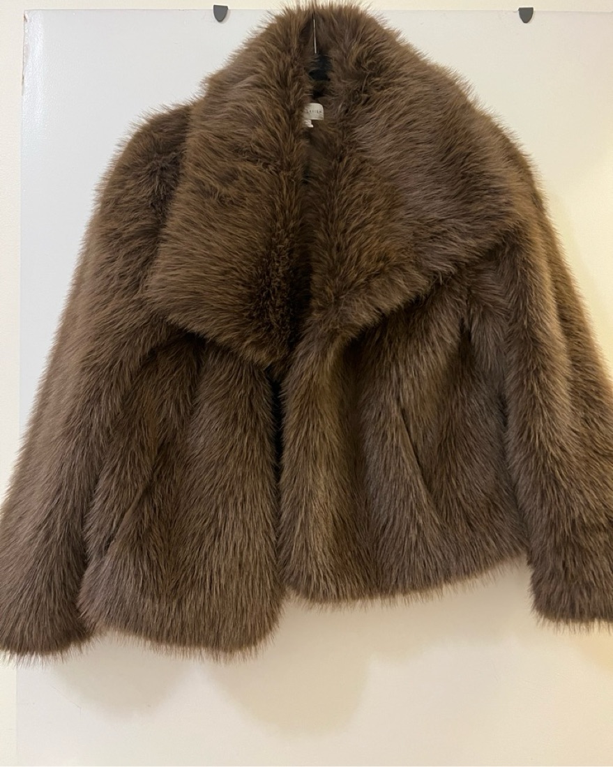 Must dry clean prior to returning & return with dry clean slip. Chocolate Brown Faux Fur Jacket.