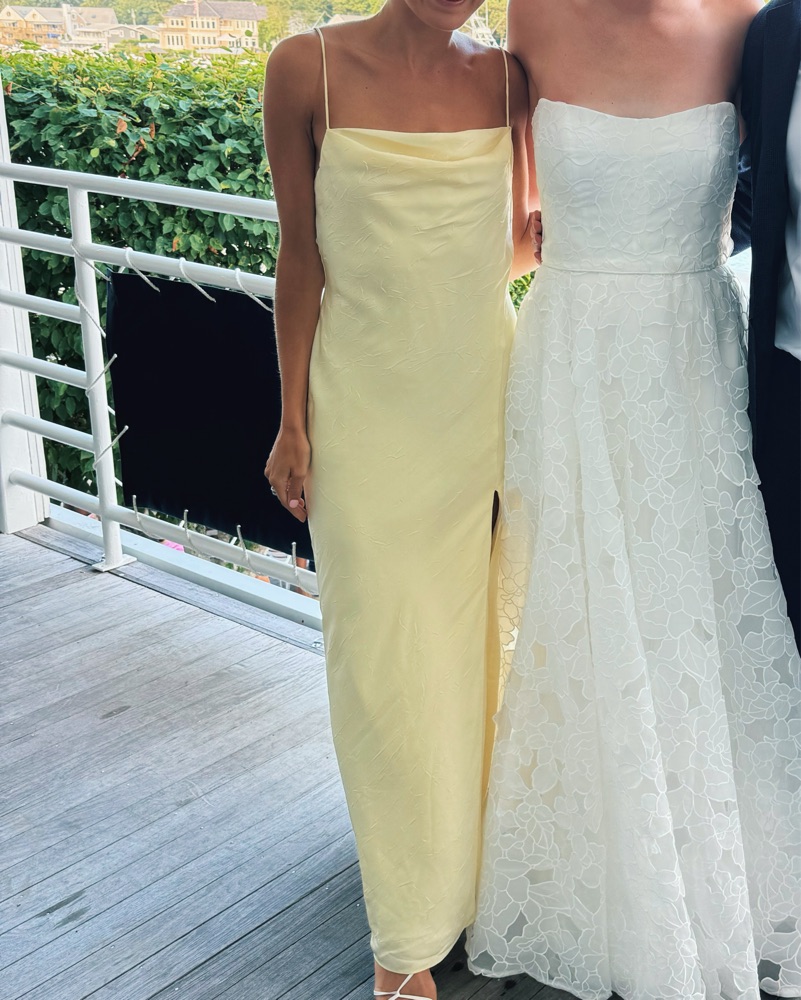 Butter yellow perfect dress! So light weight. In perfect condition and only worn once. Has a deeper v in the back . No tailoring was done to this dress . Size AU 8/ US 4