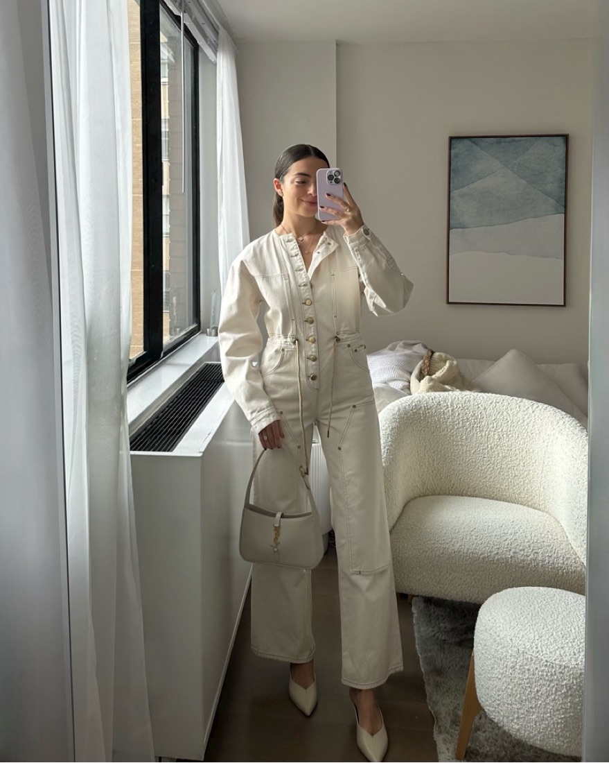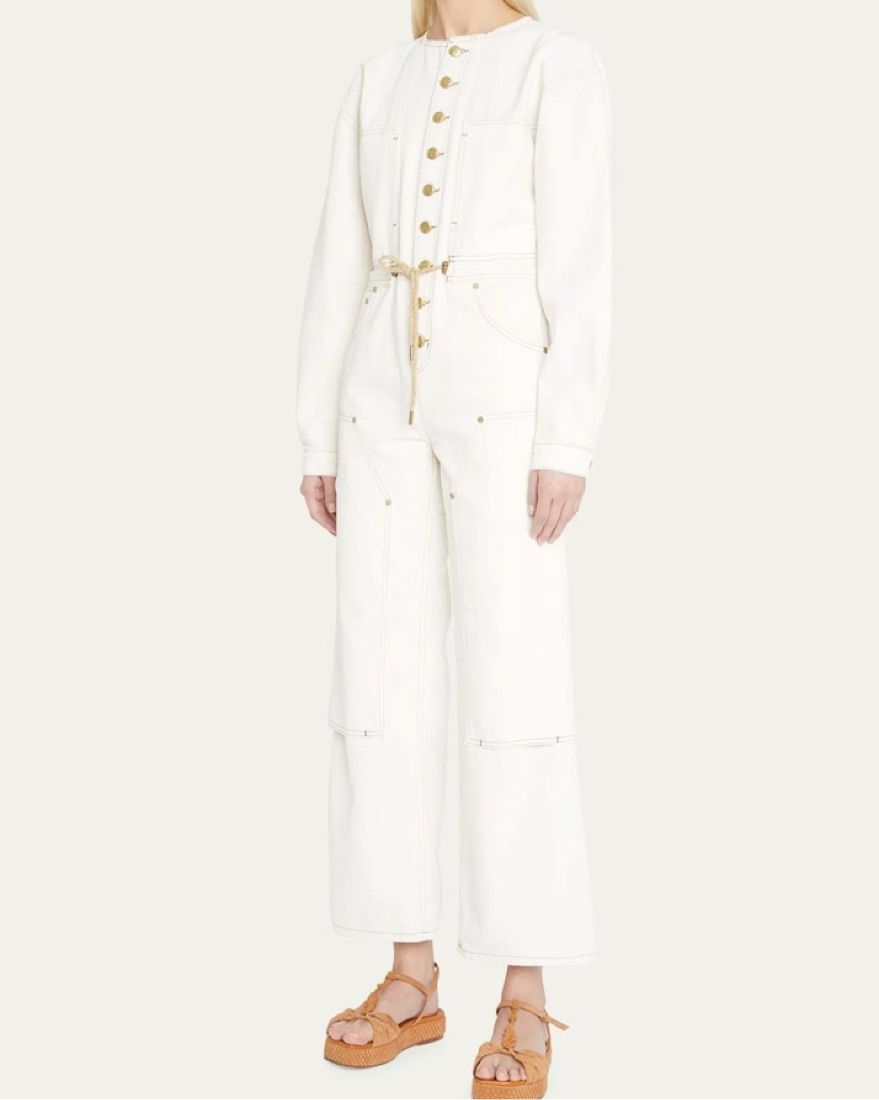 Renting my ulla johnson utility jumpsuit in a size small but fits like a size XS, 0-2 so cute for work or events