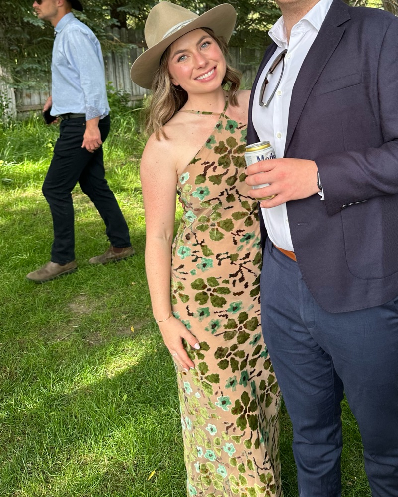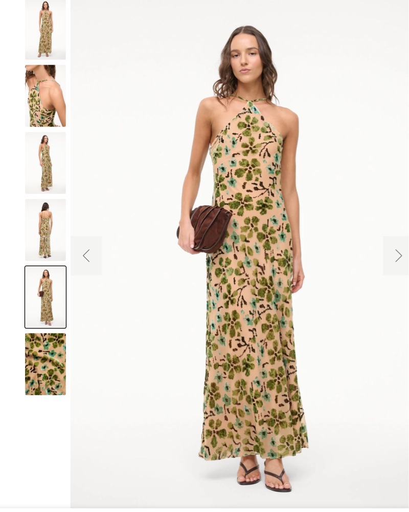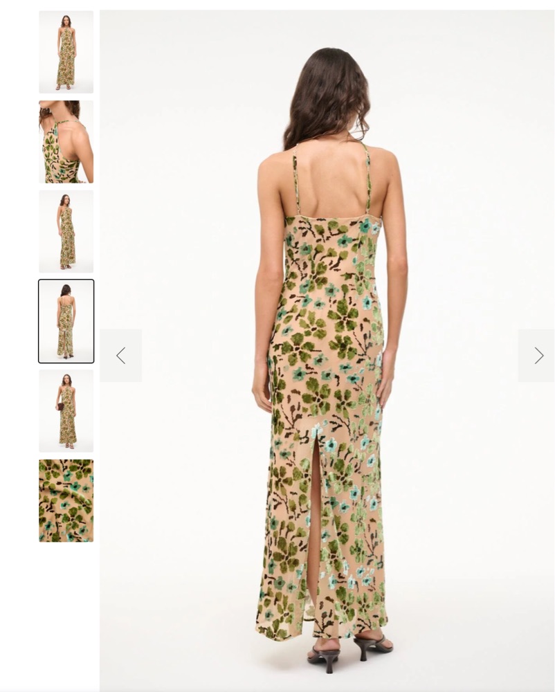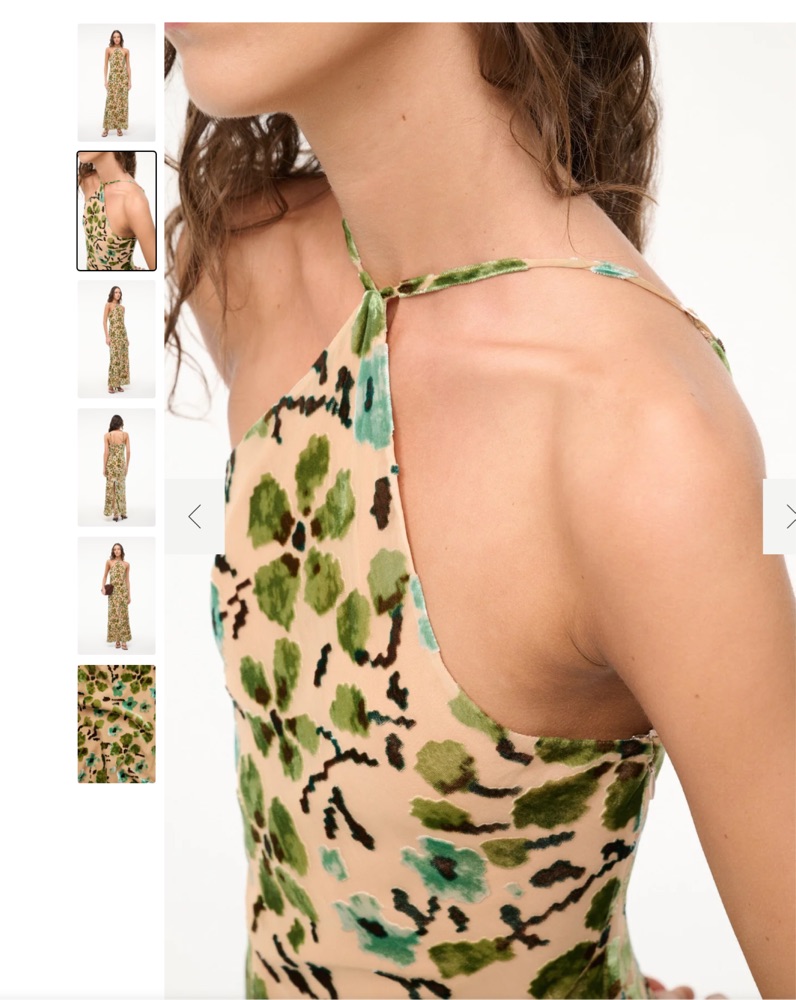 A fitted bias cut maxi dress in a burnout velvet floral. The Cubism Dress features a halter neckline and adjustable crossover straps at the back. * I had this hemmed slightly for length, perfect for shorter girls but also still long enough for tall I am 5’1 and it still hits the floor with 4 in heel