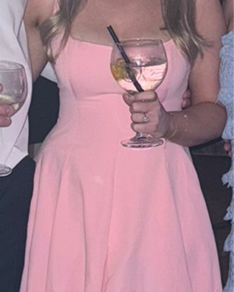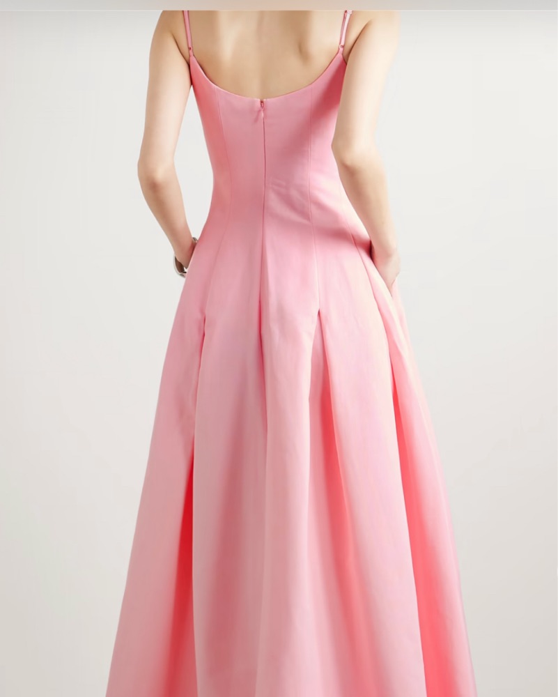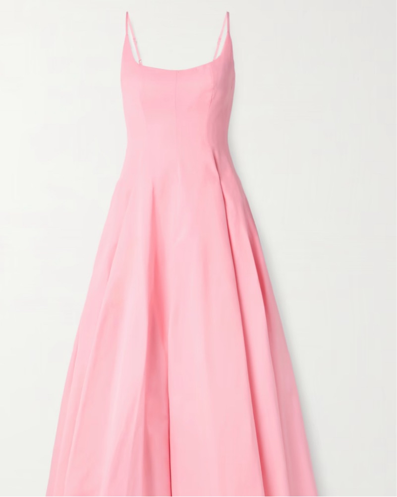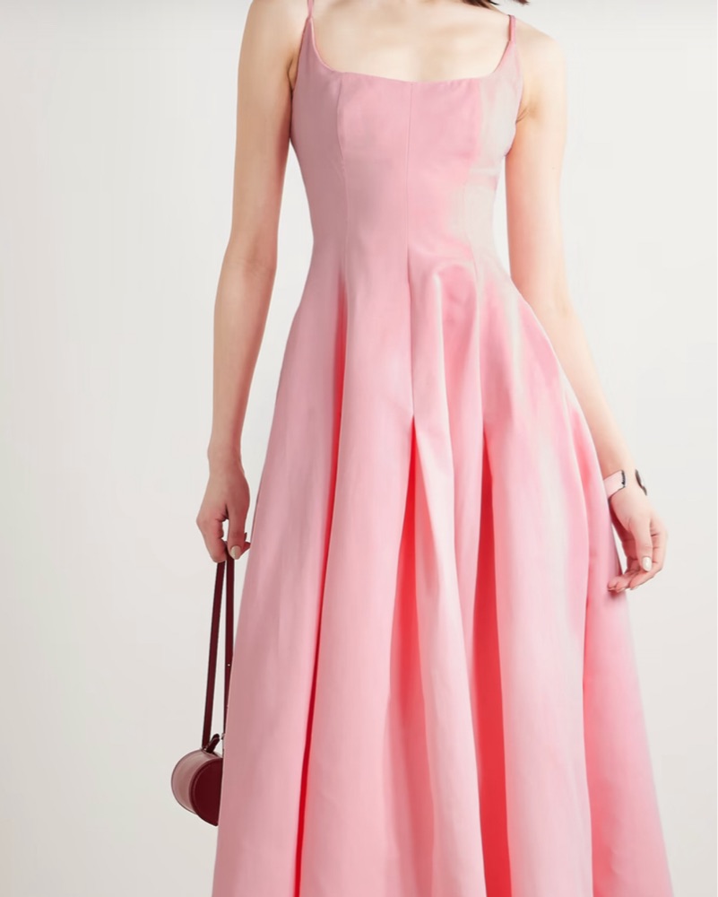 Joy pleated cotton blend pink maxi dress. Size US 8 but tailored at the waist to fit a US 6. I’m 5 ft 7 and with 3.5 inch heels it was the perfect length.
