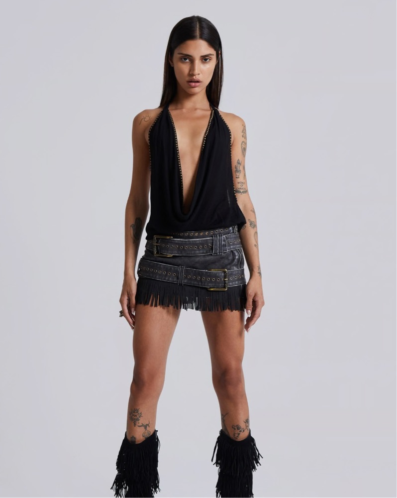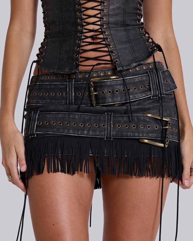 Jaded London odile leather skirt in dark grey