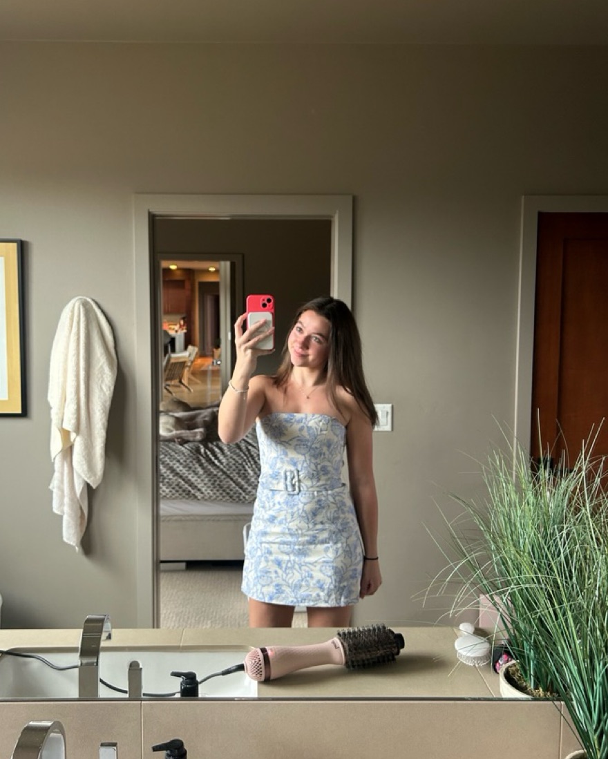 Amanda Uprichard Fae Dress in Foile Brocade- Strapless with a belted waist, perfect for brunch or a garden party. Only worn once, super super high quality!