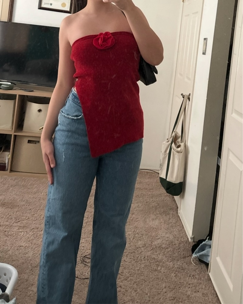 This chic red top is perfect for a night out or a stylish daytime look. It’s super flattering and comfy!