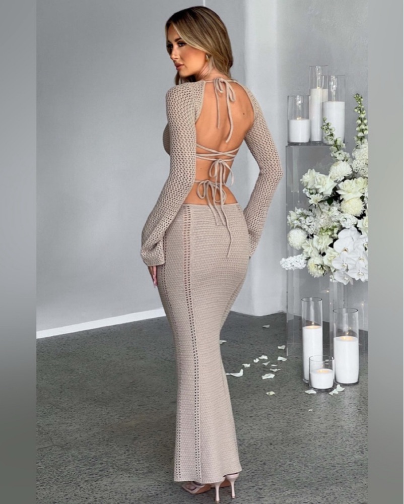 Babyboo Nadine Crochet Maxi Dress. This stunning crochet maxi dress is perfect for a chic beachside event or a summer soirée.