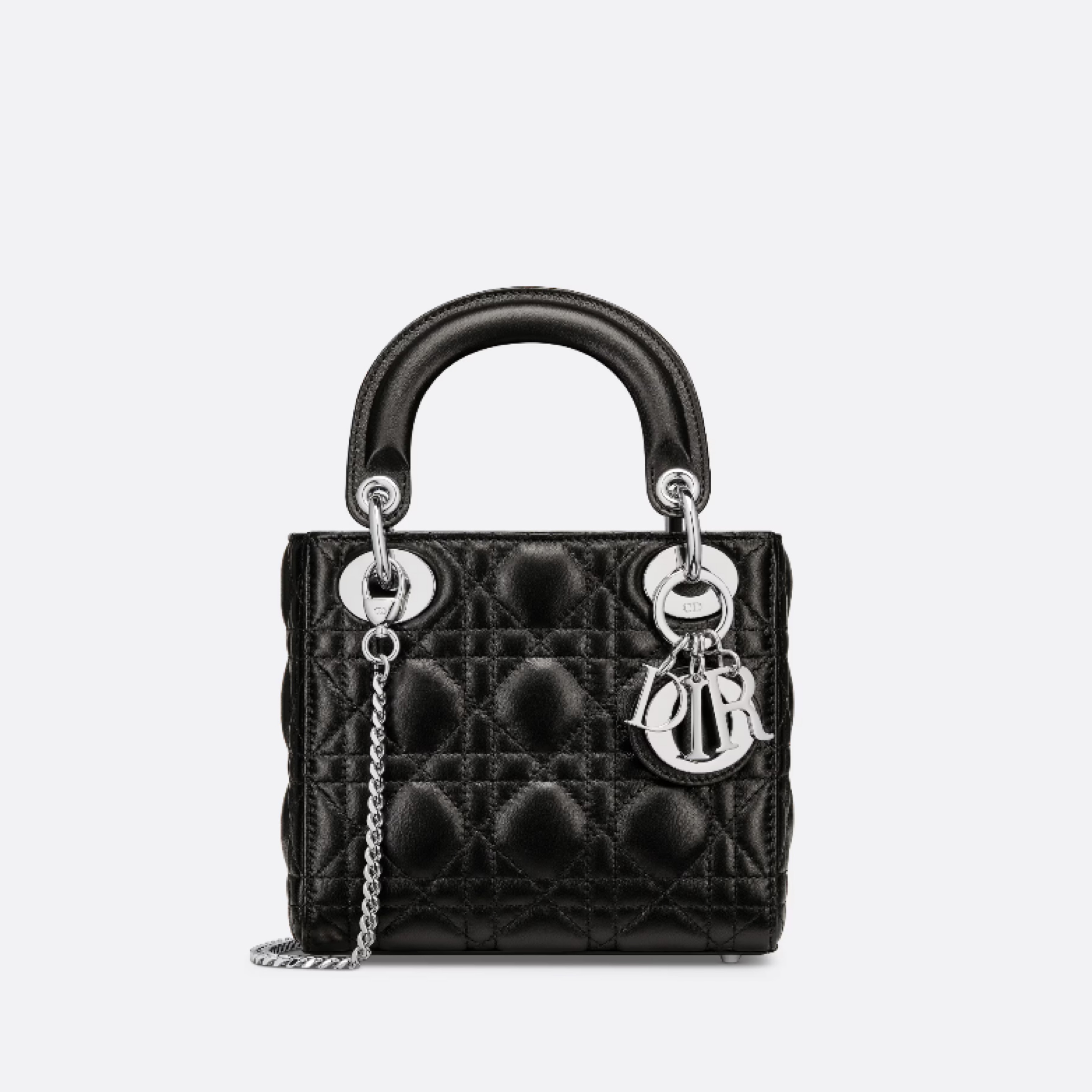 Authentic Black leather and silver hardware mini lady dior bag with straps. So cute and chic!!