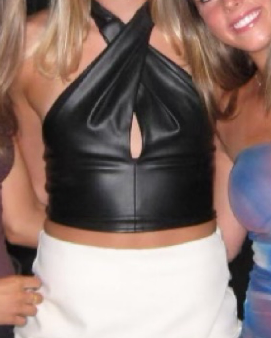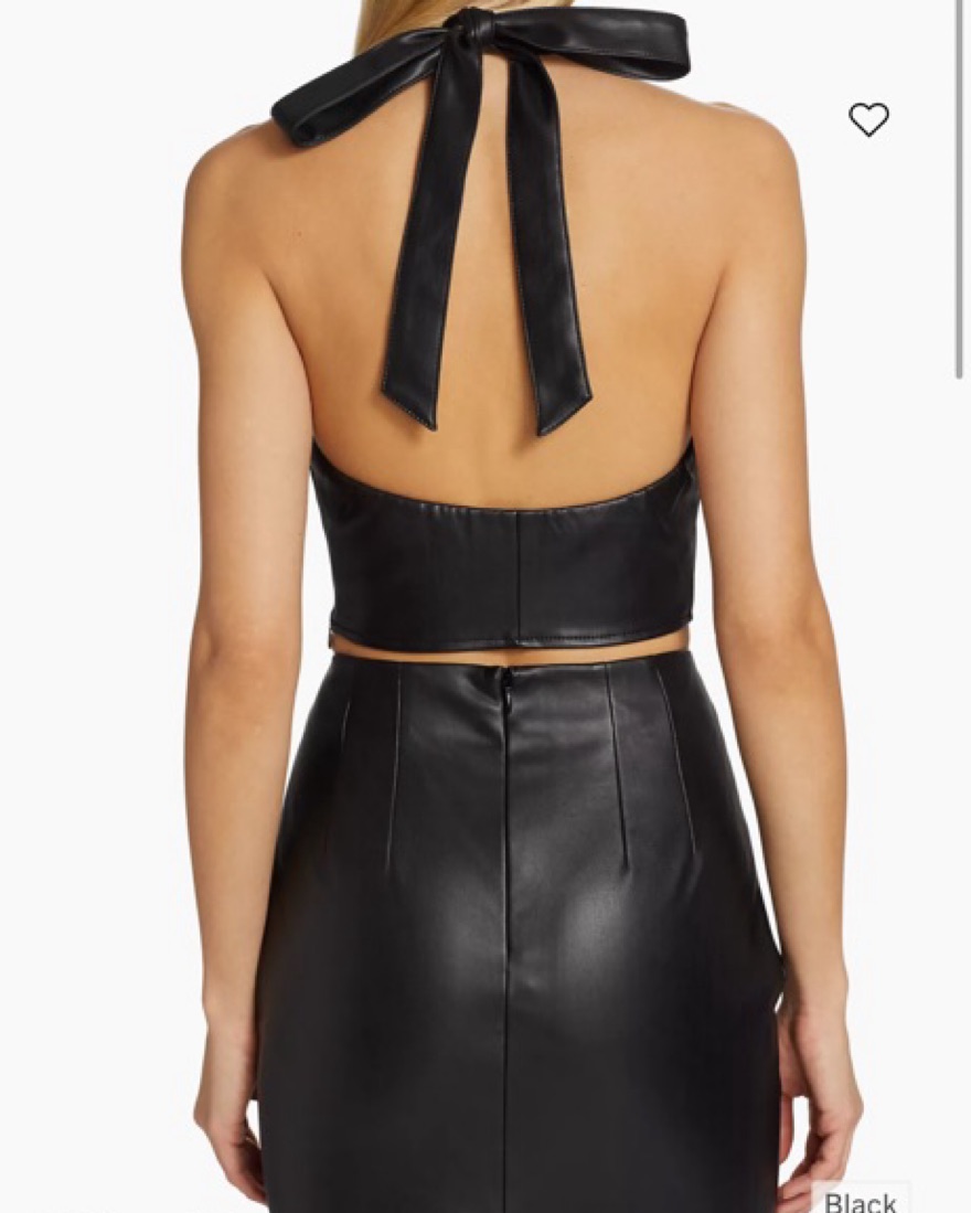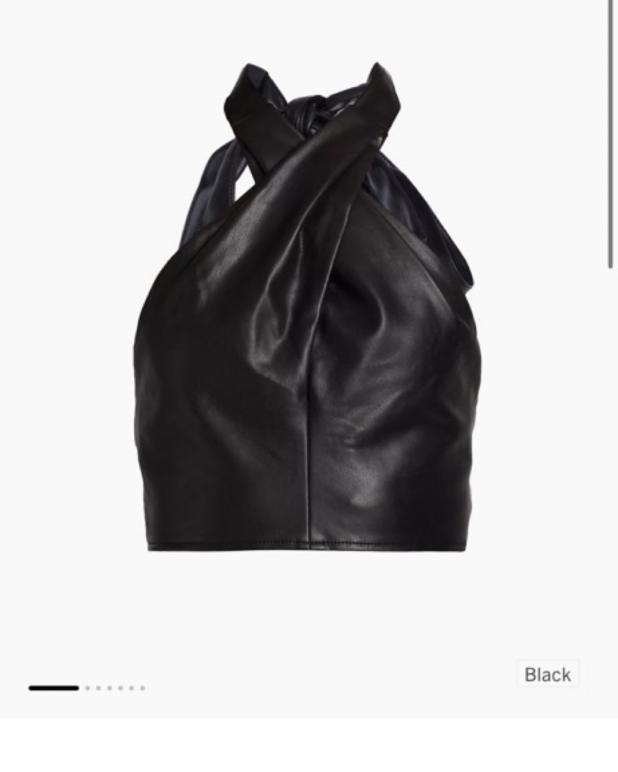 Black leather halter neck tie around top by the brand staud in a size 0. You can tie the top however you desire. Zipper on the side of the top.