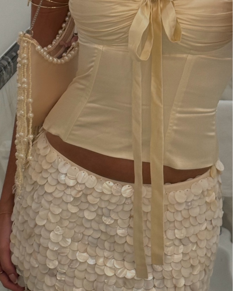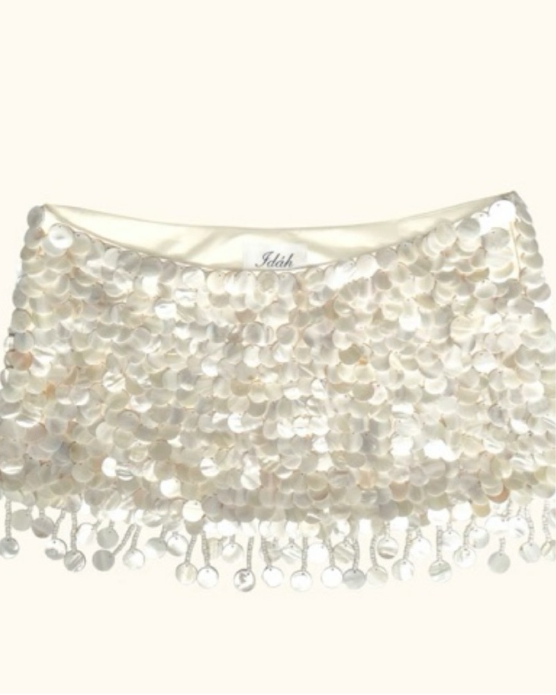 I did get this tailored to fit my 25” waist. This fit low waisted. This little mini skirt is made from soft cotton fabric and hand beaded by artisans with over 1200 fine mother of pearl beads. Cut and lined in 100% ivory cotton, this low-rise skirt gently skims the hips with a fitted, a-line shape.