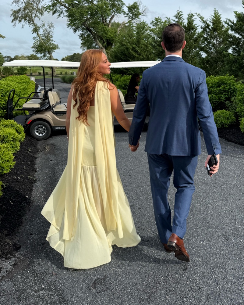Butter yellow dress with sheer skirt from Show Me Your Mumu with matching shawl. Priced higher for dry cleaning.
