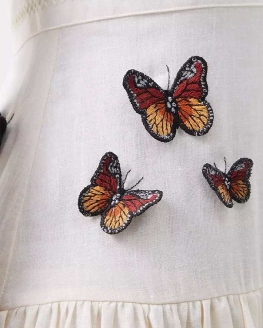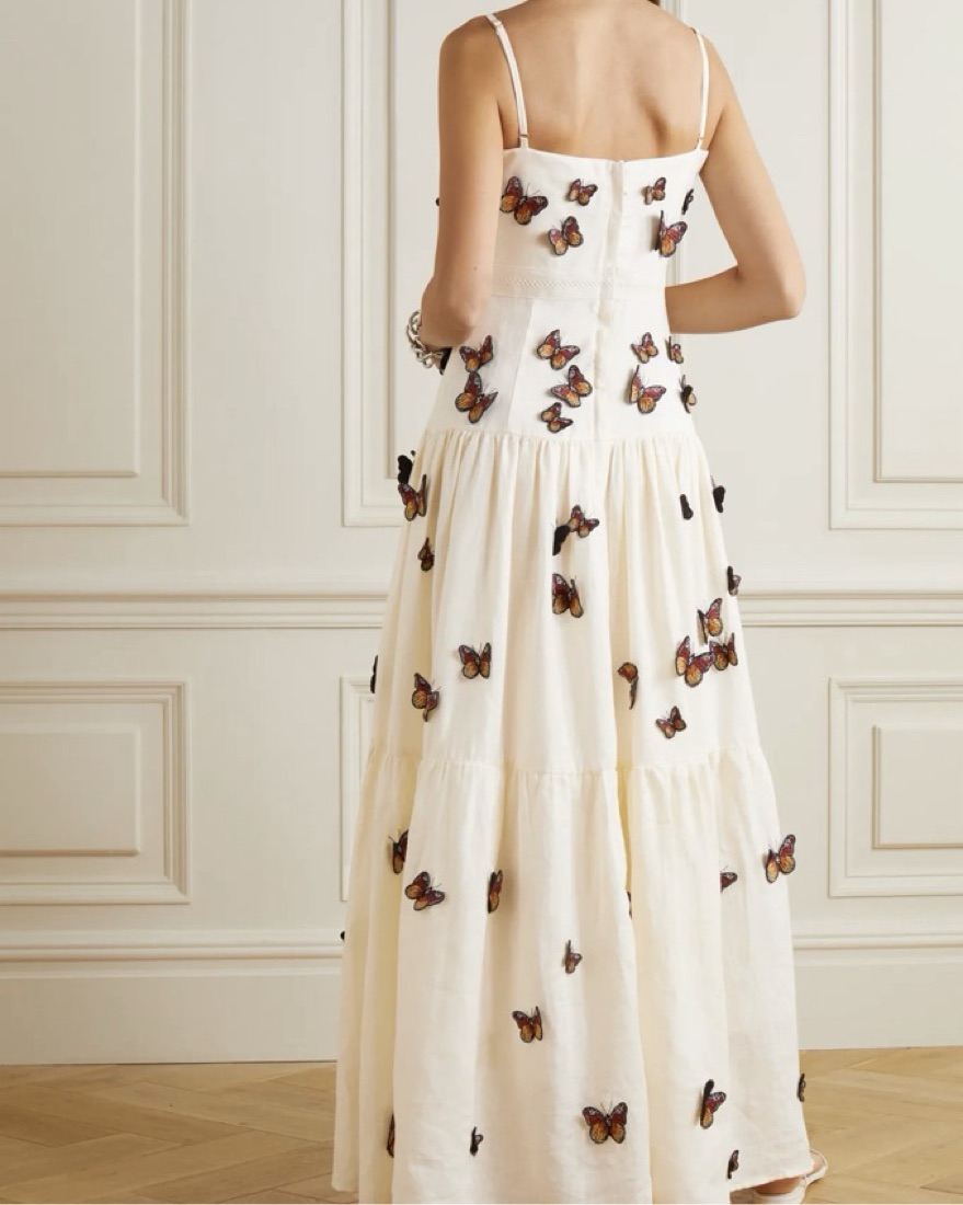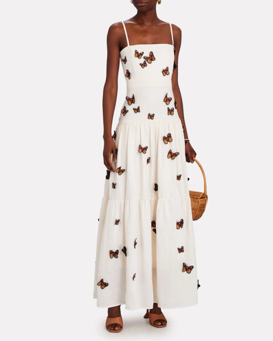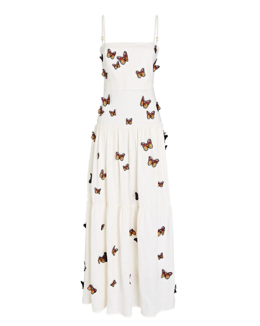 AGUA BY AGUA BENDITA Lima Embroidered Butterfly Linen Maxi Dress size M (US 6) - worn one time, basically brand new!