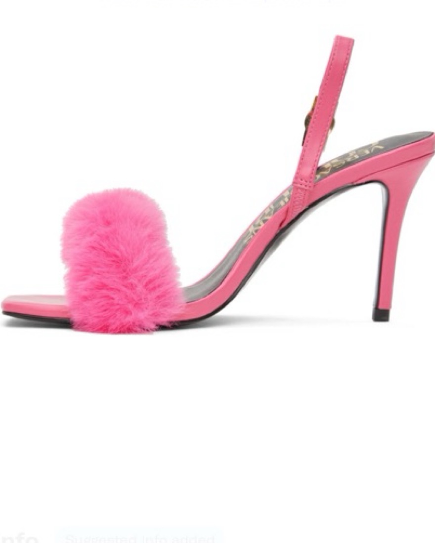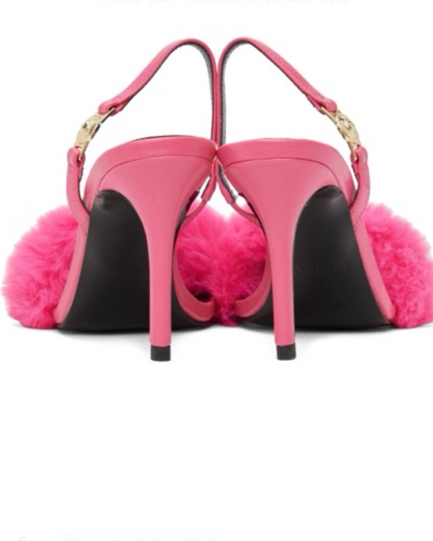 Hot pink “Emily” fuzzy sling backs by Versace Jeans Couture. Women’s EU 38 but would prob fit a narrow US 8.5 better. Purchased from SSENSE but only worn once.