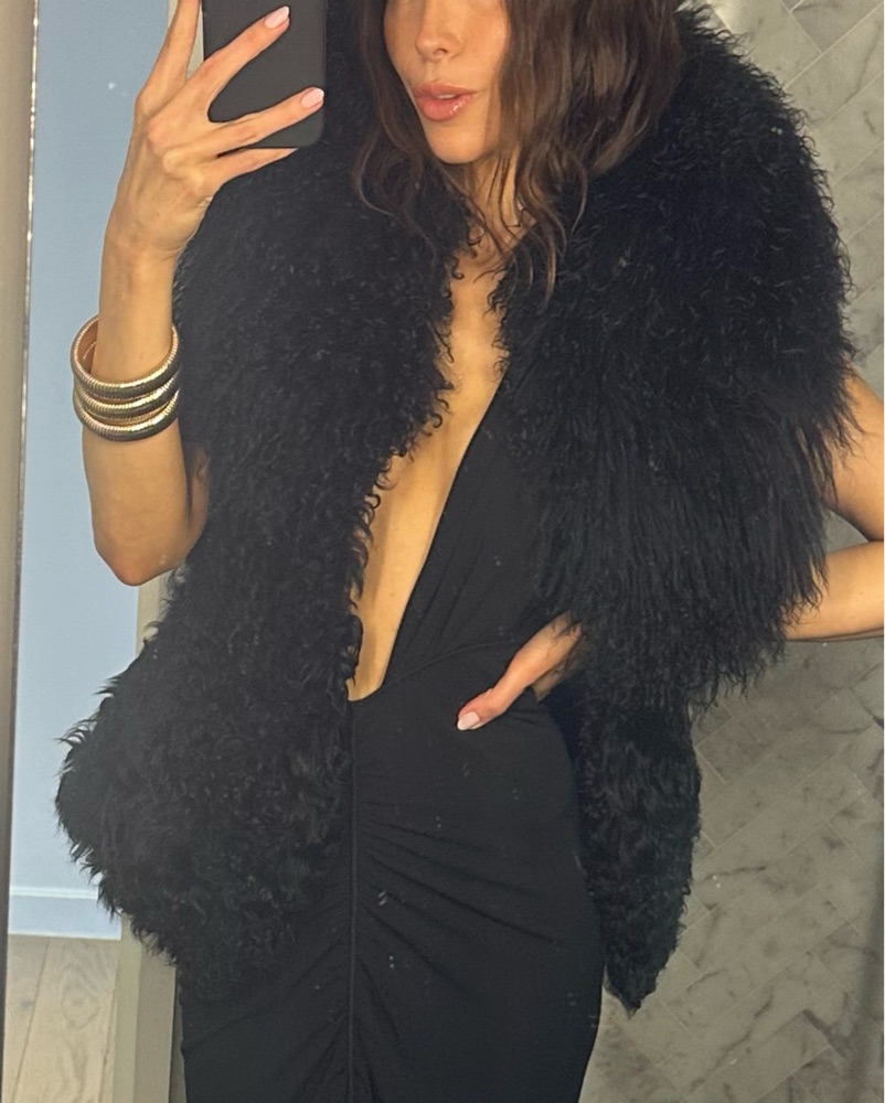 Ralph Lauren Purple Label lamb fur black vest. Size small. Ultra chic, flattering, warm. Love this vest! Perfect condition. Hook & eye front closure w/ pockets. Going out, fur, Aspen, Vail, aprés ski, holiday, NYE, fashion week, fall, winter, spring, party, birthday, event