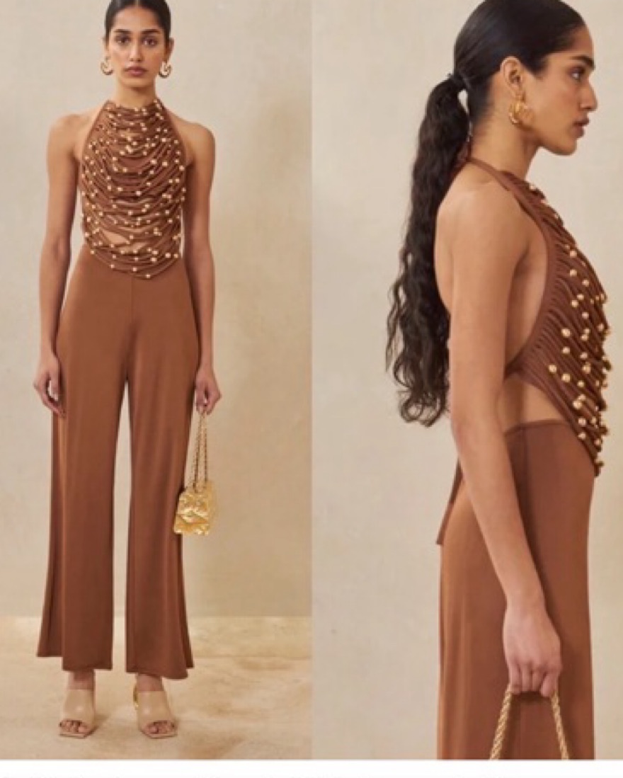 Cult Gaia Brown Beaded Jonna Top XS
