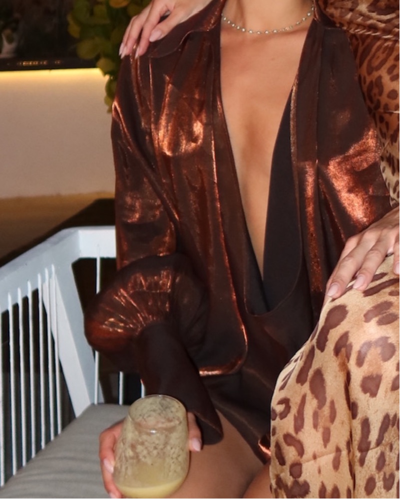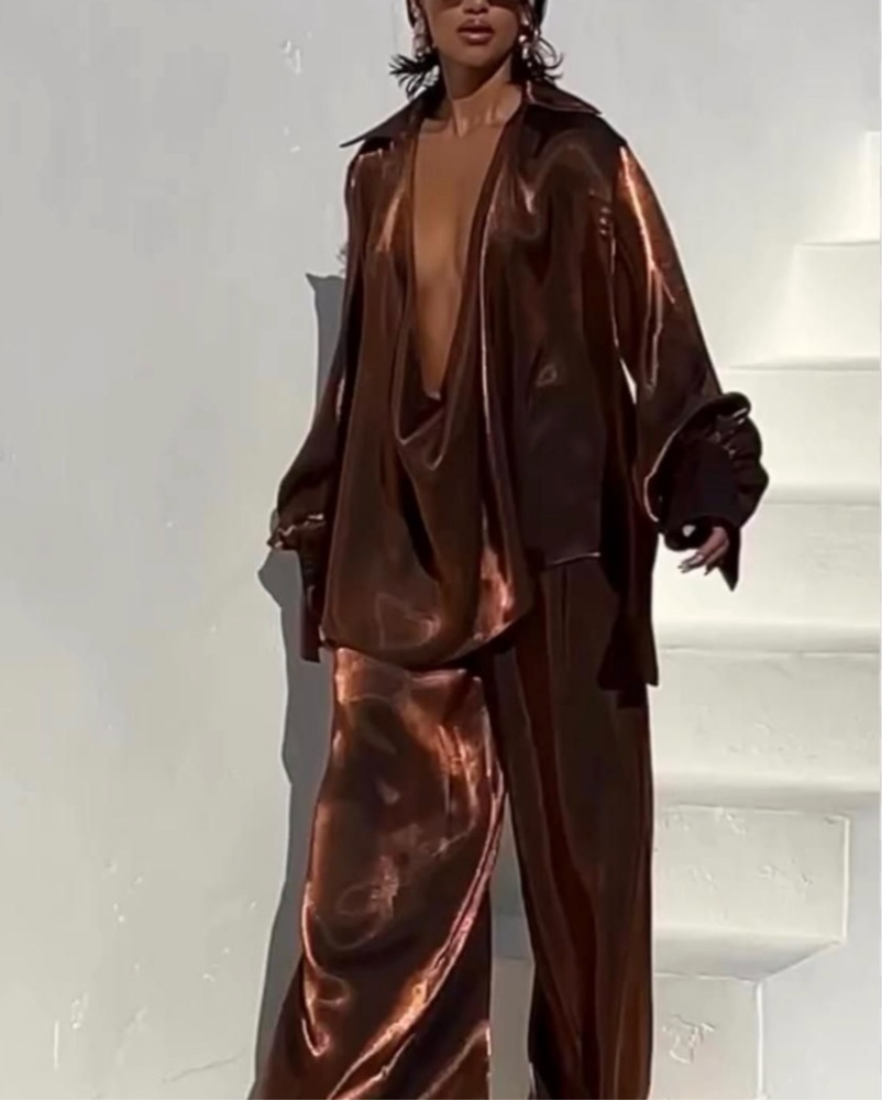 Brown Laina Rauma liquid shimmer set, willing to rent separately. Pants are medium and top is XS - S