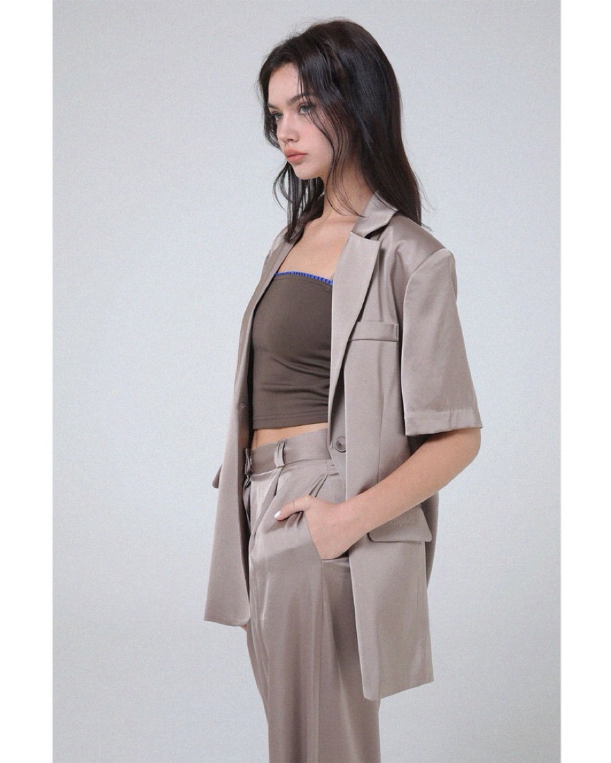 Silk Low Rise Pants (Beige)