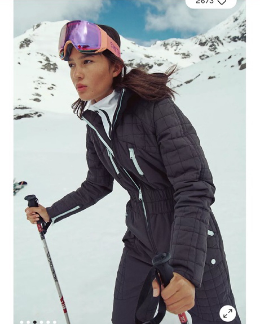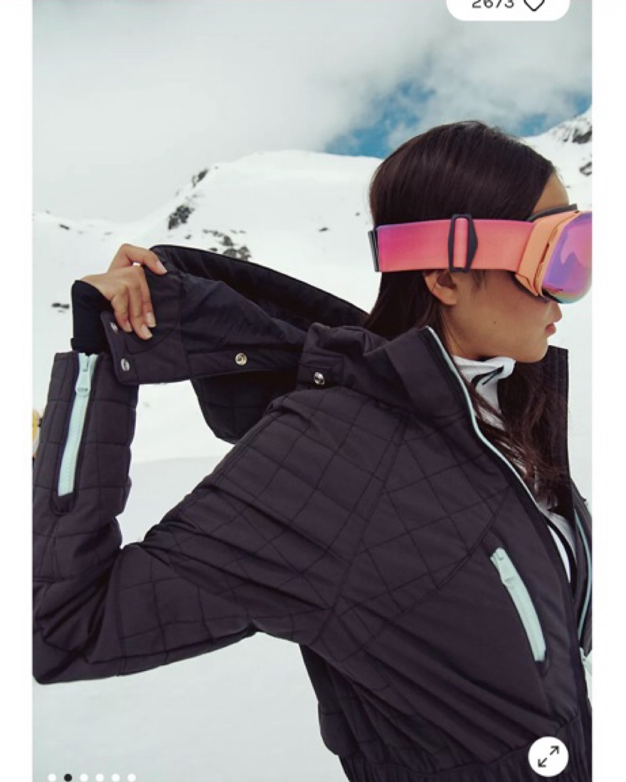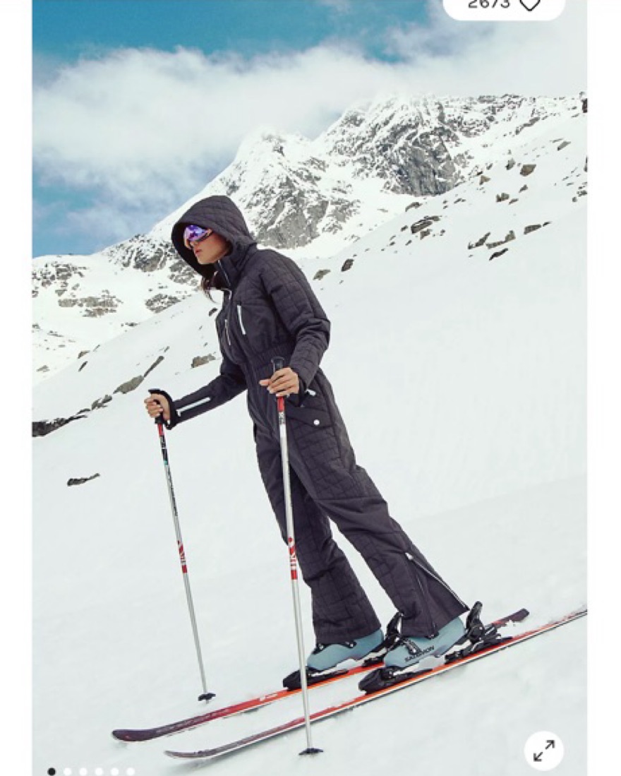 size small quilted ski suit with light blue detailing! measurements are live on site with size chart to reference. currently retails for $550. new with tags for purchase.