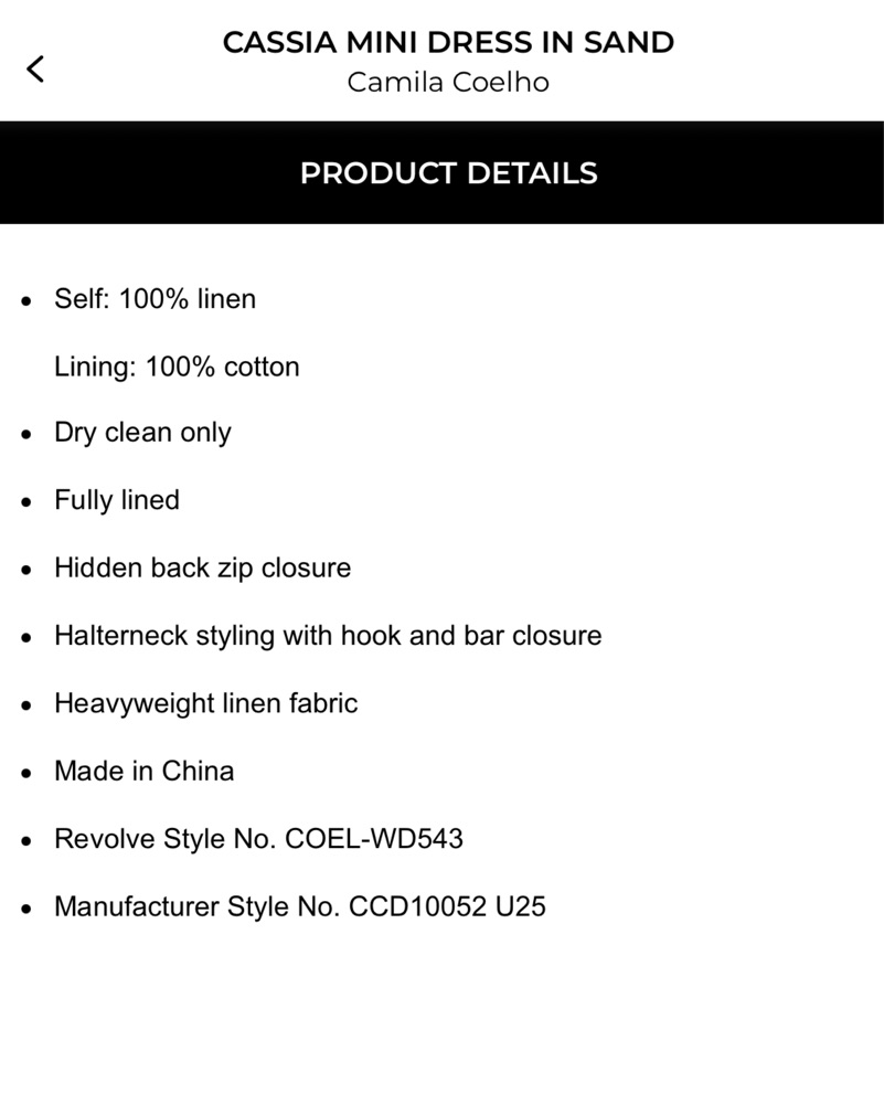 Camila Coelho - Cassia Mini Dress in Sand 100% linen Lining: 100% cotton. Date night, brunch, vacation.