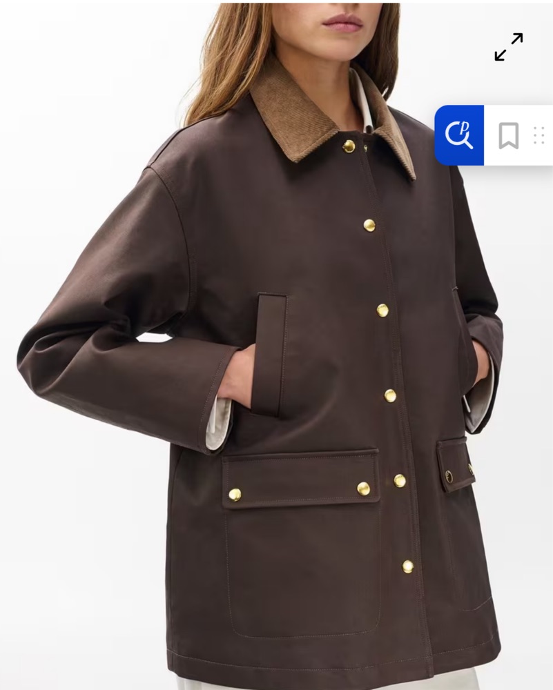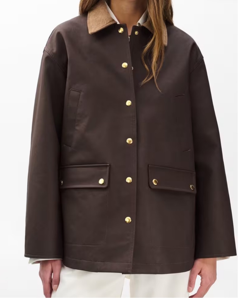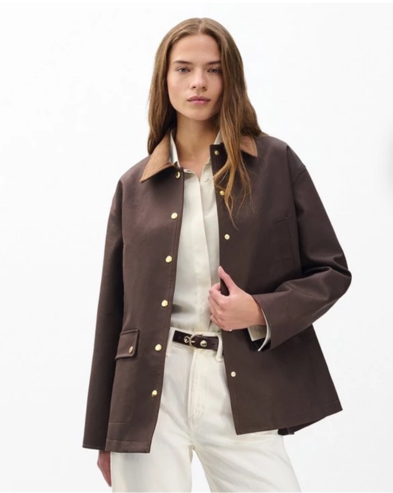 A twist on the barn jacket crafted from midweight, water-resistant cotton with a relaxed silhouette and dropped shoulders. It's finished with a contrast corduroy-trimmed collar and gold-tone snaps. Lined in a silky fabric so it easily slips on. Even over a hoodie.