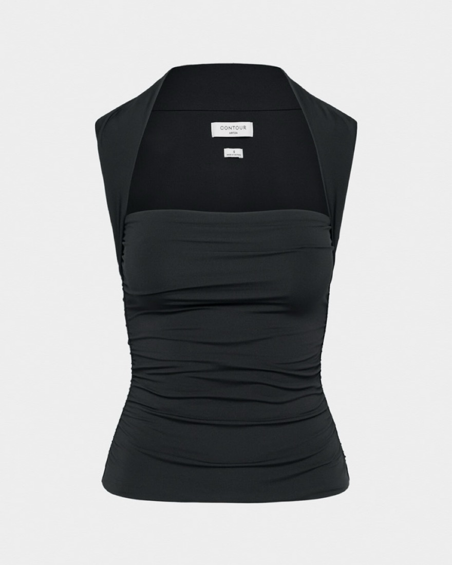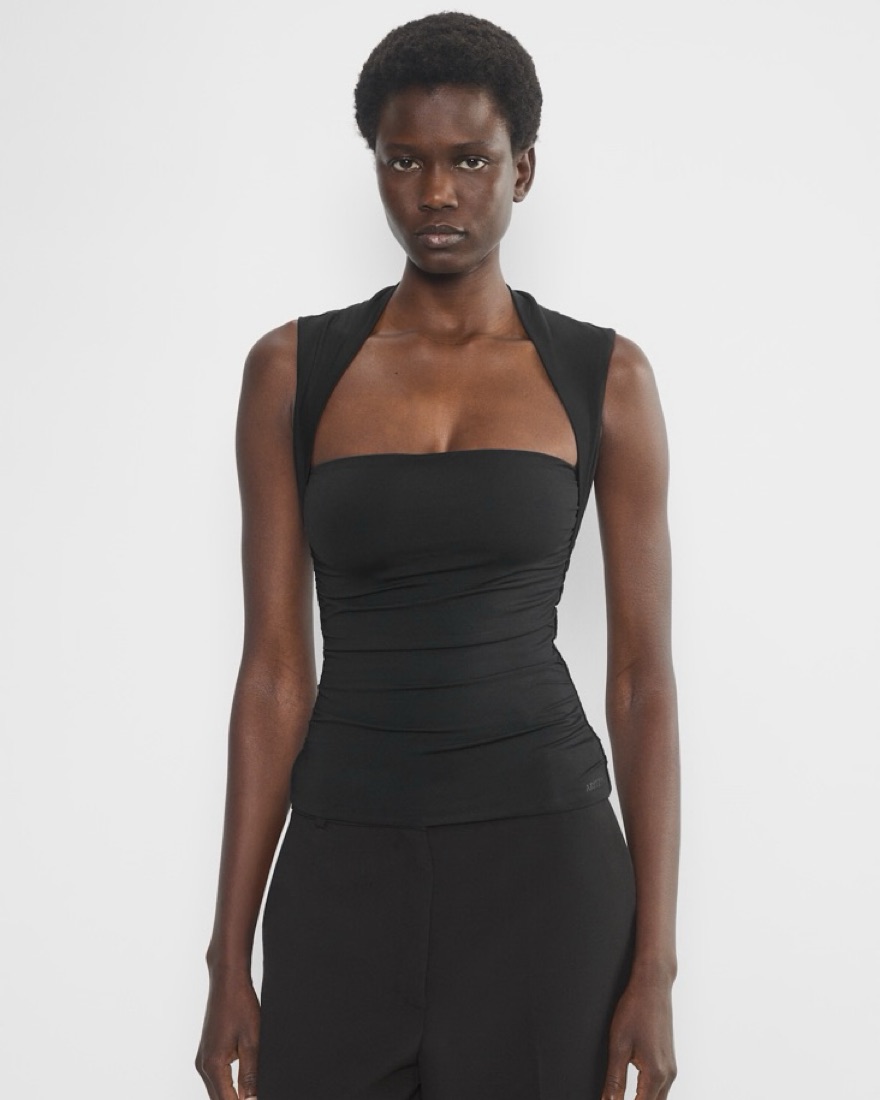 This is a squareneck tank with side ruching and double-layer fabric for a supportive fit. Form fitted and body sculpting.