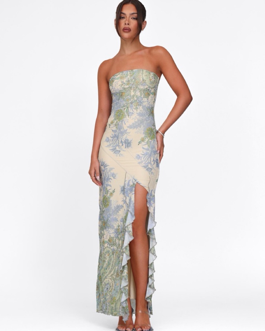 Tiger Mist Theo Maxi Dress // stunning print and colors. Mesh bandeau maxi dress - fully lined