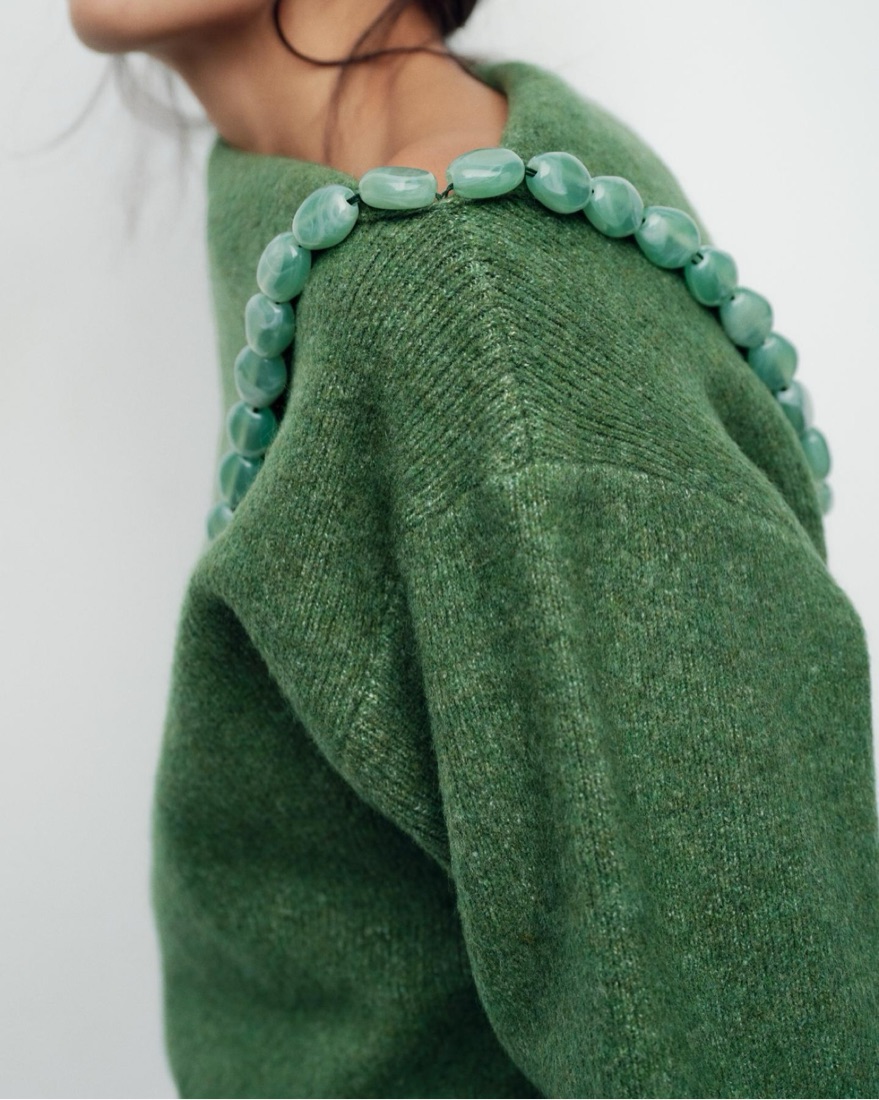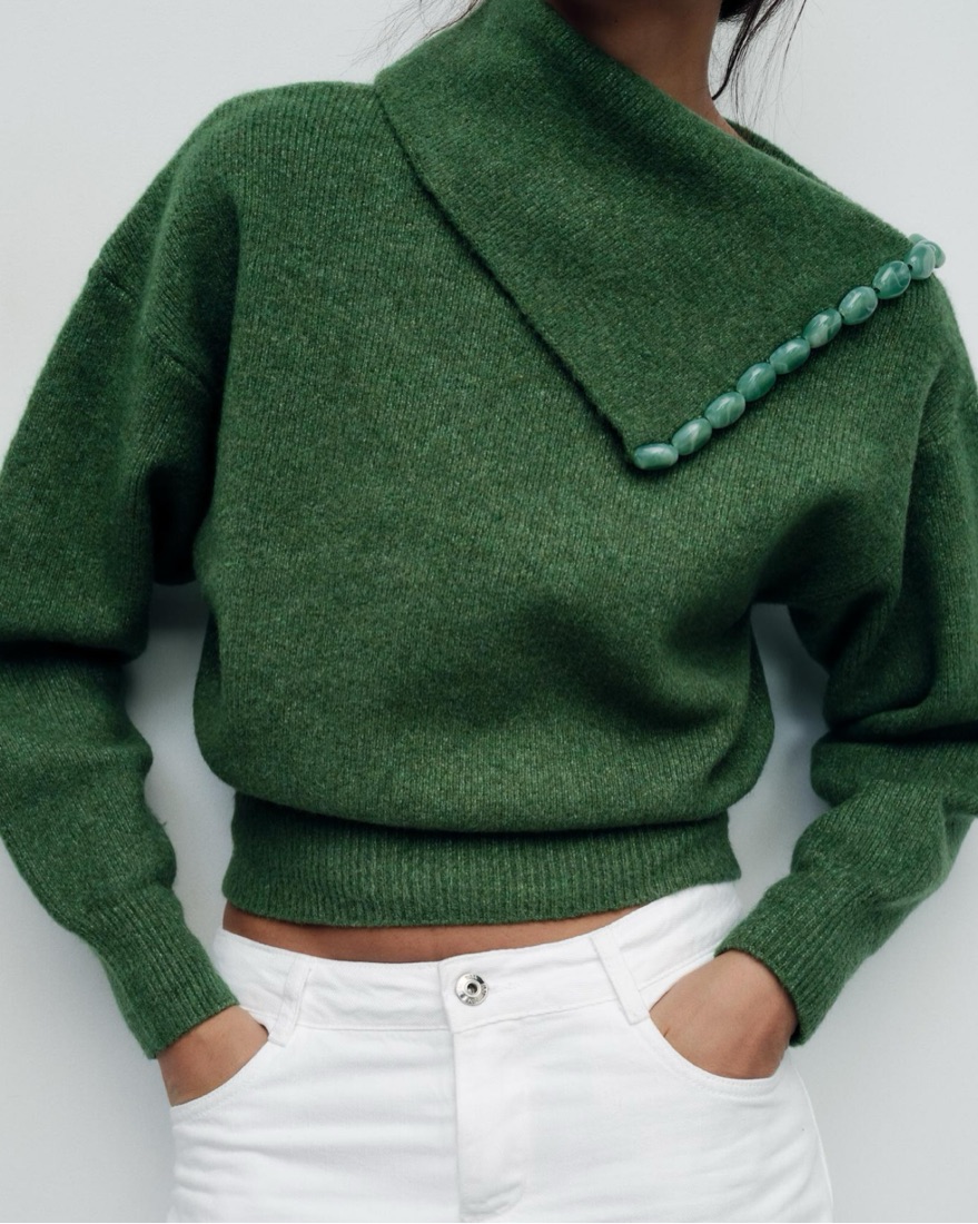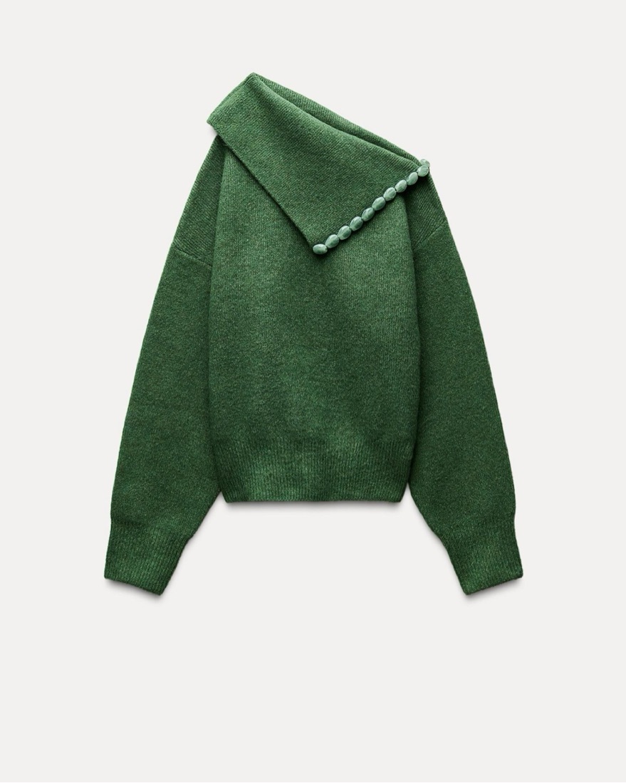 Green One Shoulder Sweater With Gems by Zara - Pickle