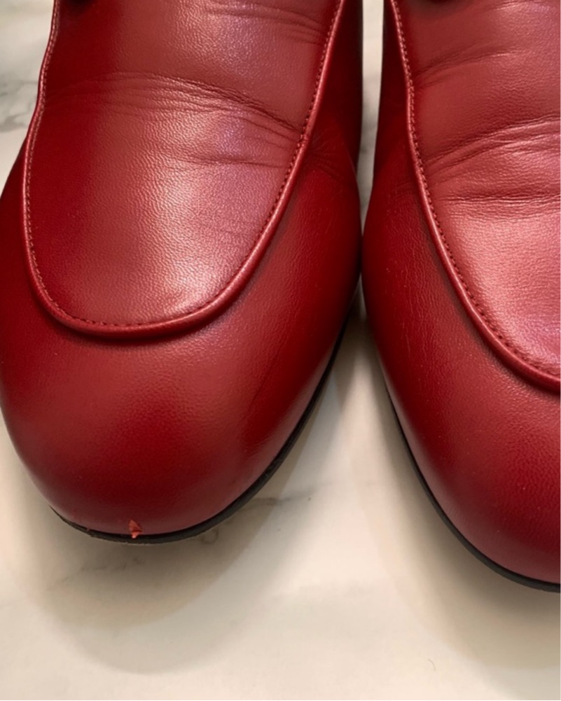 Slight creasing of leather and wear on soles. Size 9.5 but fit like a 9.