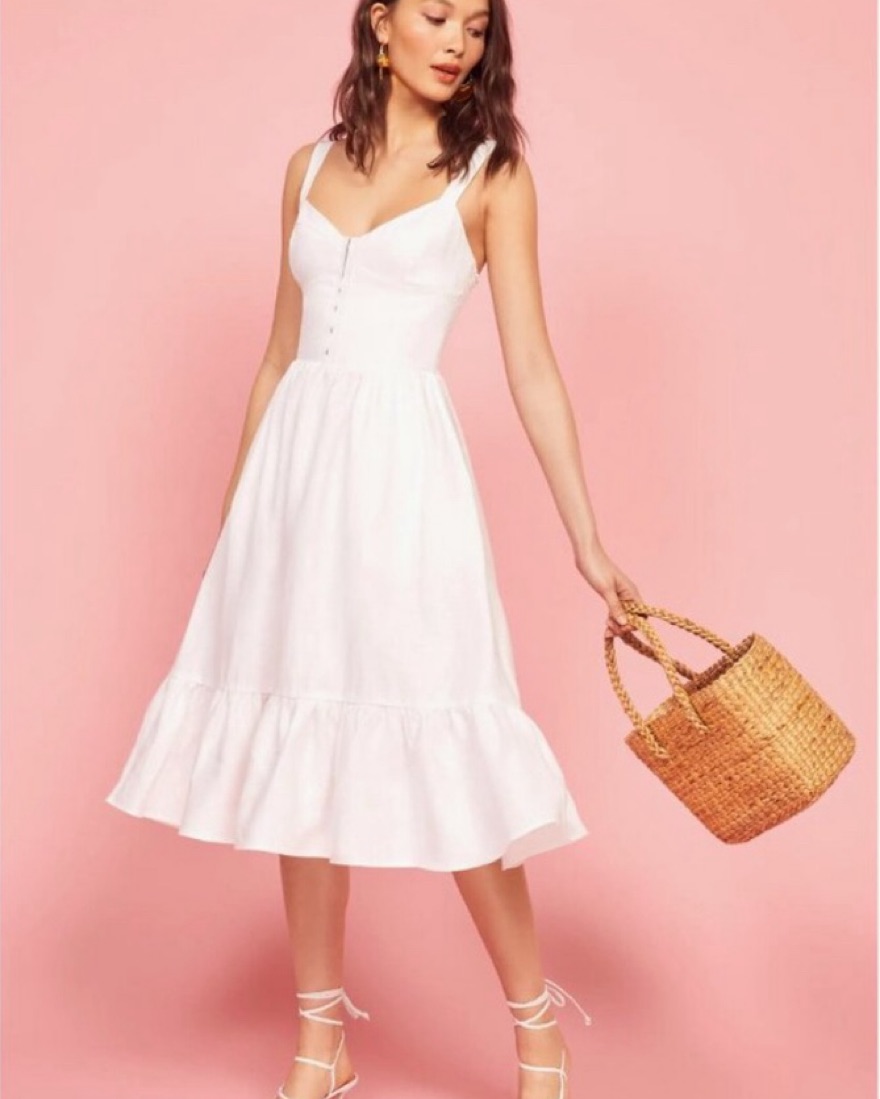 Reformation Dolci Linen White Dress by Reformation - Pickle