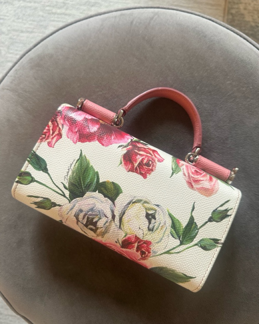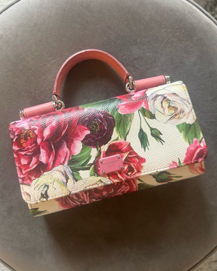 Dolce and Gabanma floral rose and peony mini bag with optional chain. Have matching dress also. Will fit phone as well as multiple other items. Perfect for garden party, baby shower, afternoon tea.