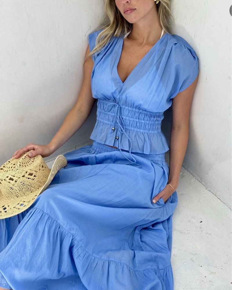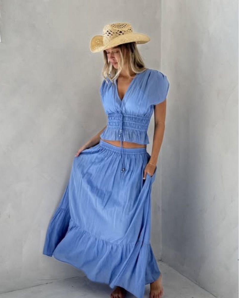 Blue matching set two piece with bead details!