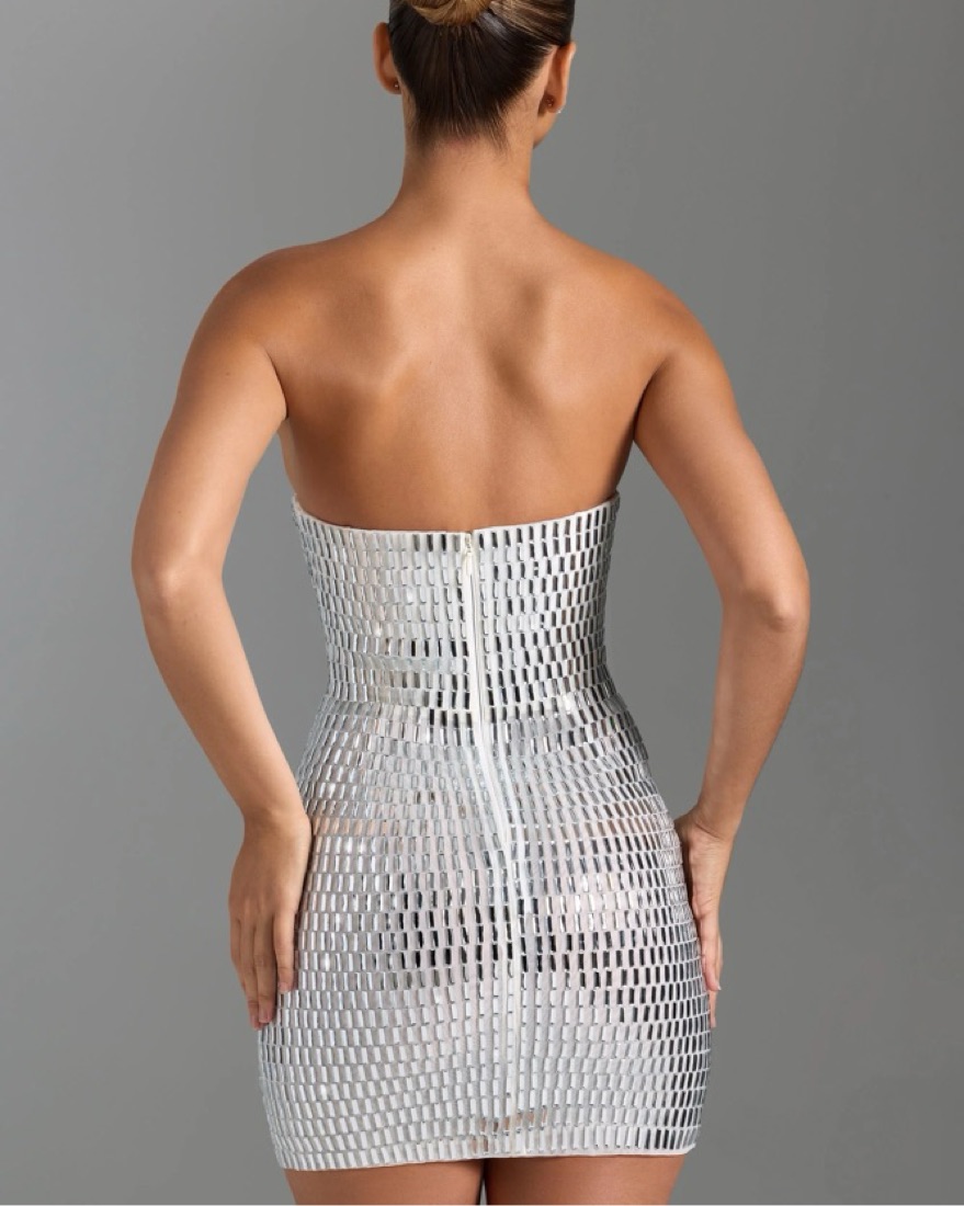 *NEW * Scene-stealing silhouette, the Aurora dress is embellished with scores of sparkling HOTFIX embellishments that catch the light. Underlaid with a double-layered mesh lining for enhanced coverage, it’s crafted from figure-hugging power and 20D mesh to a bandeau silhouet