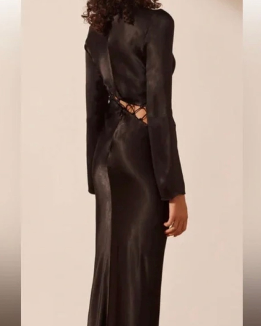 Long sleeve dress with asymmetrical lace up detail. Work once
