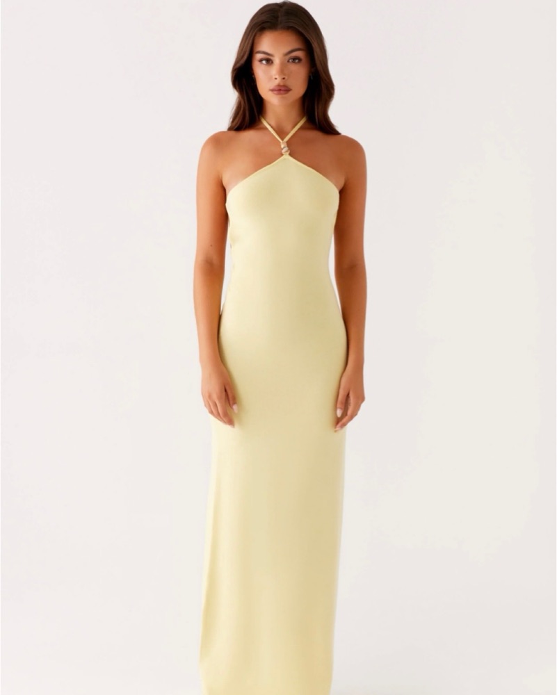 Brand new with tag on still. The sleek, backless silhouette creates a dramatic yet alluring look, perfect for a warm weather night out, formal evening event or special occasion.