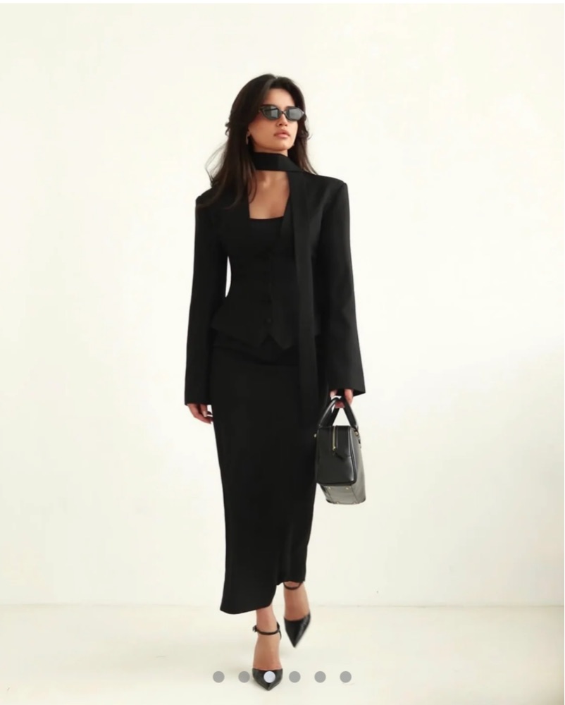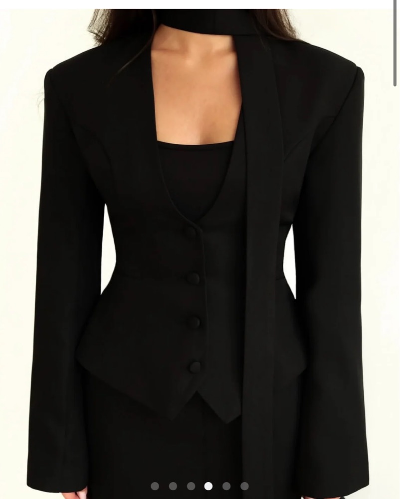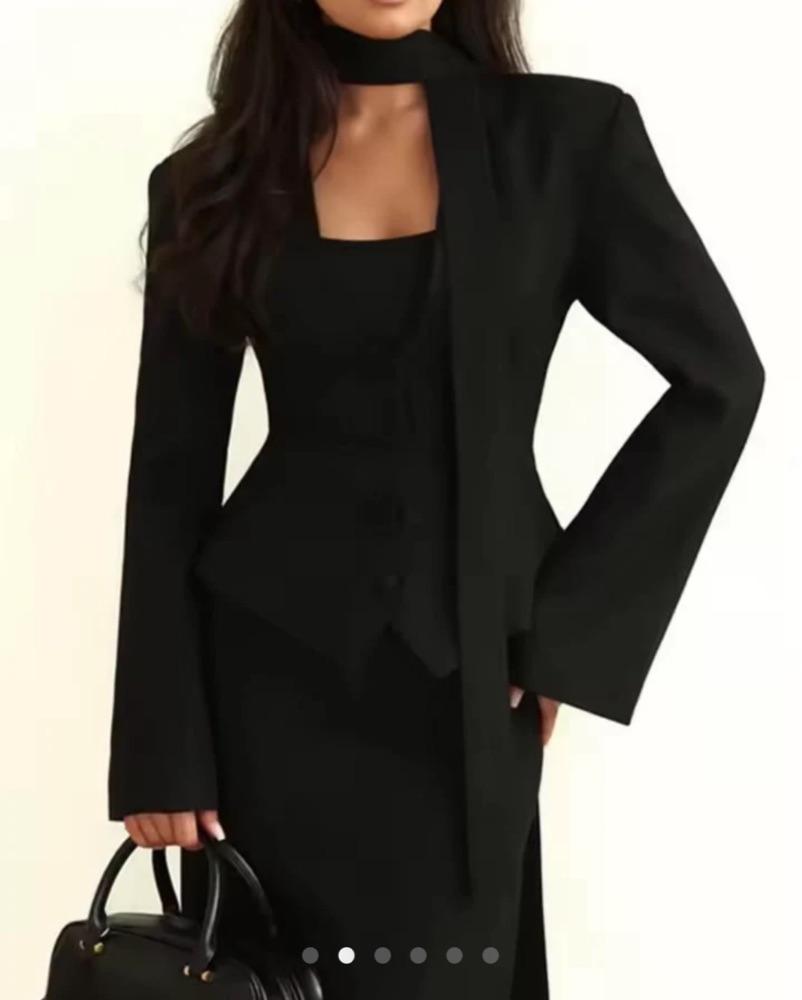 Black Cinched Blazer With Neck Scarf