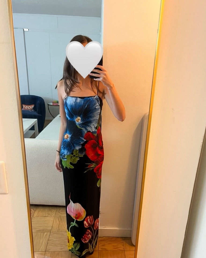 Alice & Olivia gown can be dressed down/up. Slit looks higher than it is in the back. Very flattering