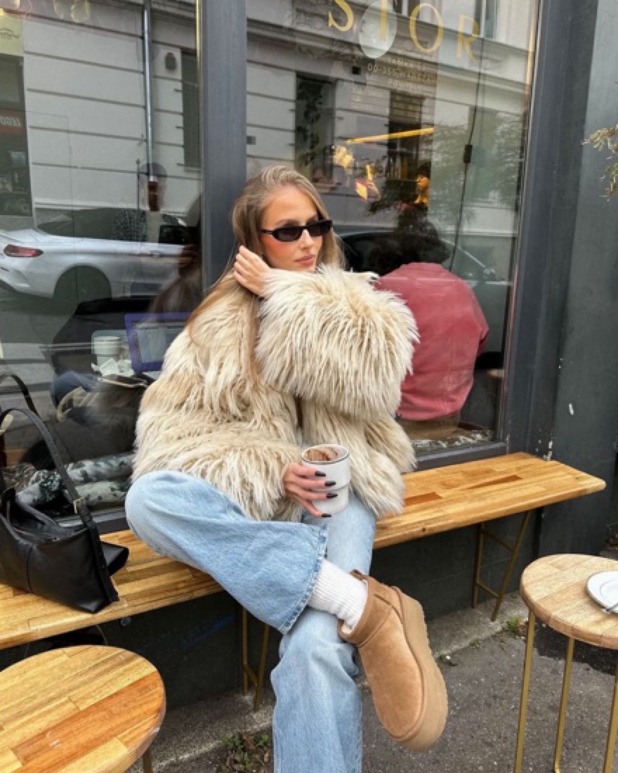 Throw this fluffy sheeps fur coat over any winter outfit for the perfect textured winter look of your dreams 🐑