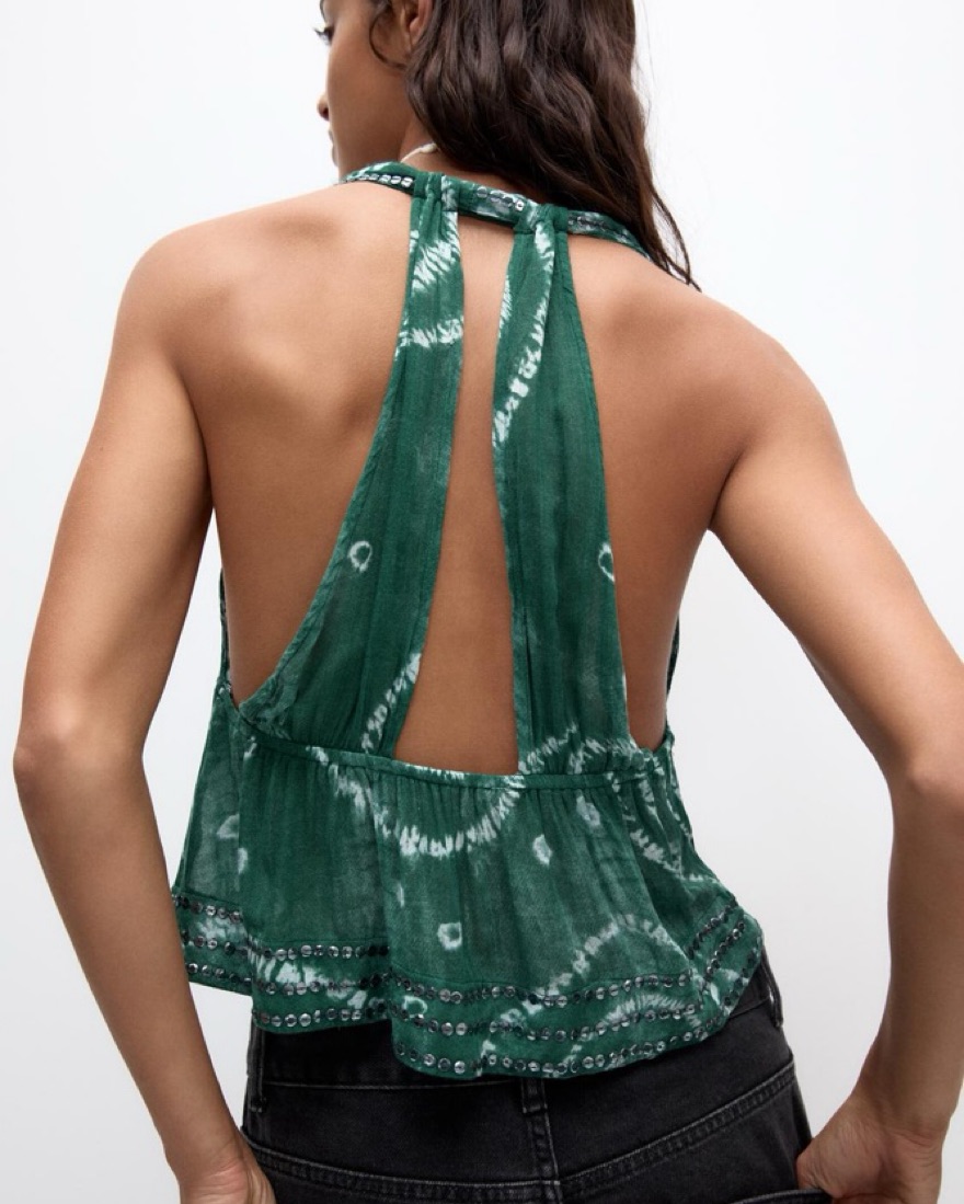 Pull & Bear Tie Dye Green Halter Top by Pull And Bear - Pickle