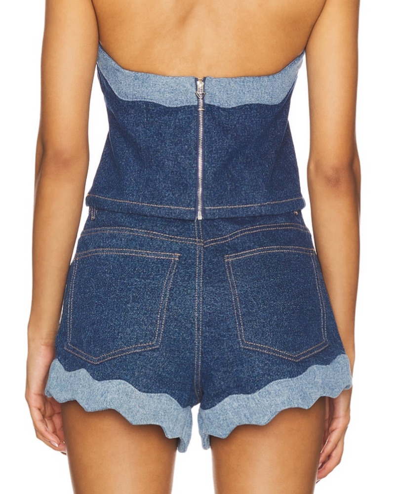 Matching denim set, scalloped denim shorts, two tone, mini, vacation, trips, euro summer