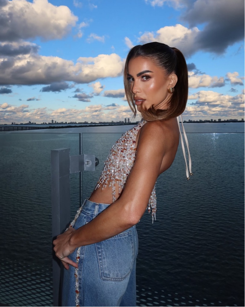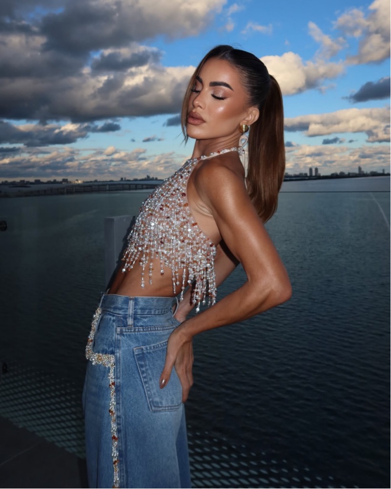 PatBo Pearl Dust Embroidery Beaded Halterneck Top. Beautiful delicate top perfect for endless events. Vacation, photo shoot, etc.