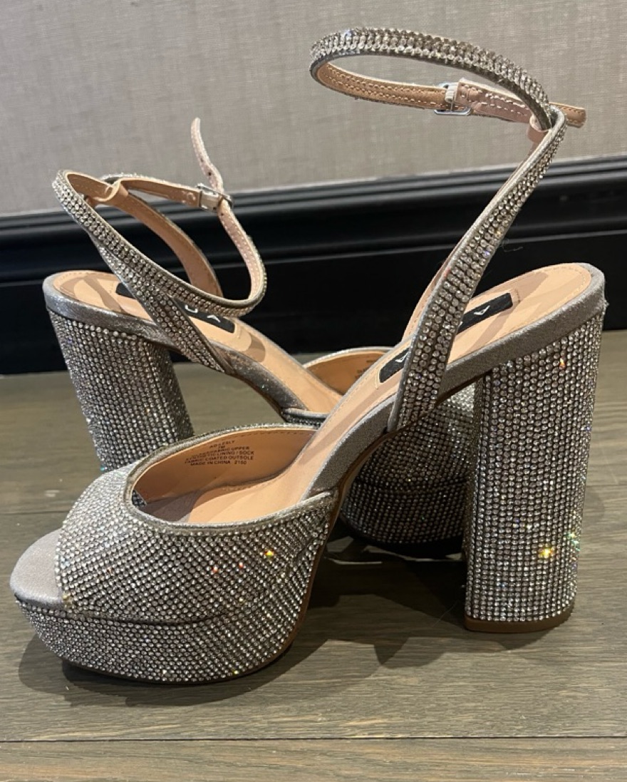 These captivating platform heels feature an eye-catching diamante encrusted design for a show-stopping look. Only worn once and super comfortable.