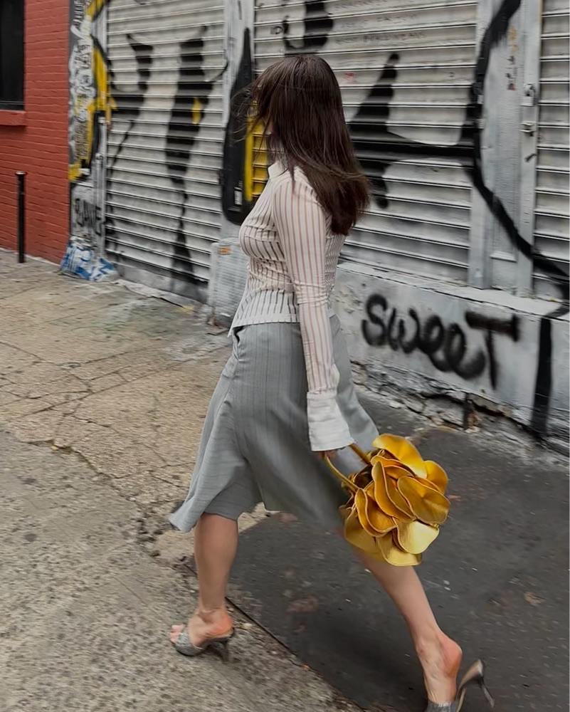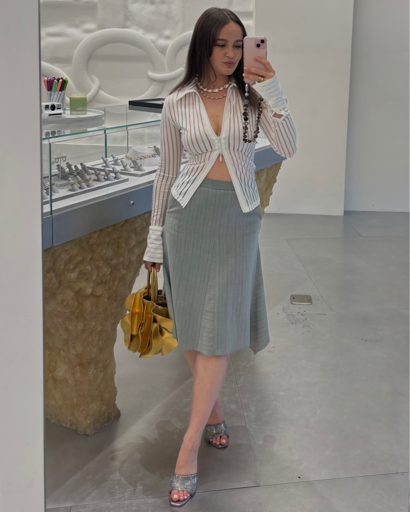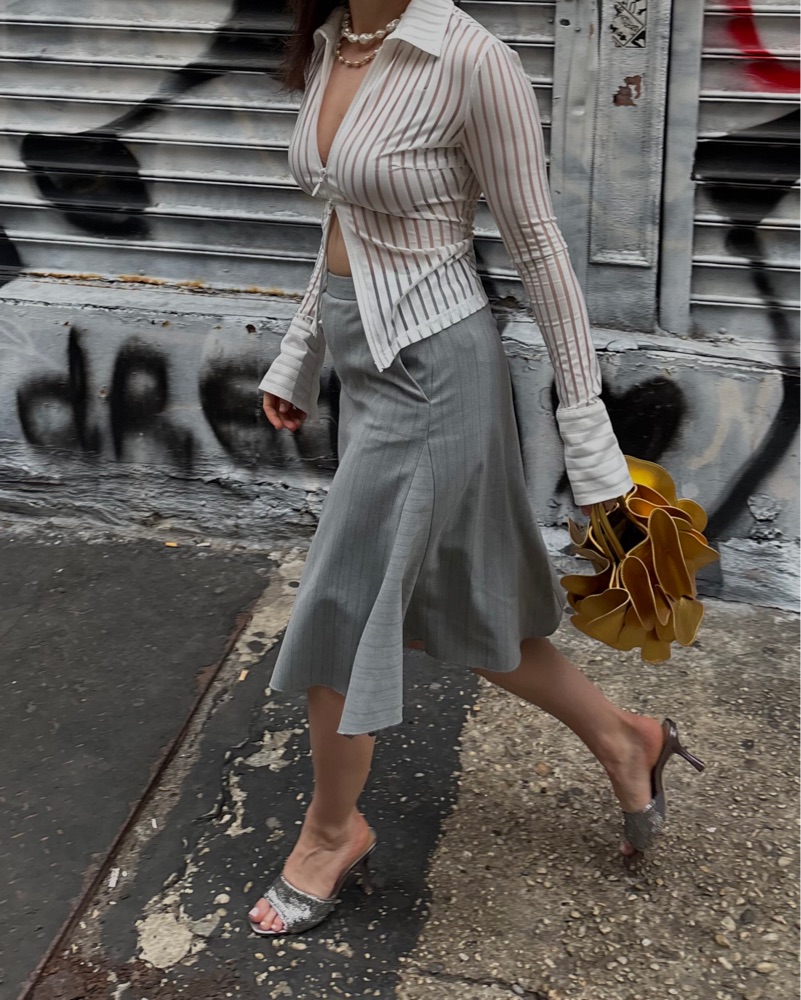 Vintage BCBG Asymmetric Striped Skirt in Gray. I wear as a high waisted and fits XS/25.