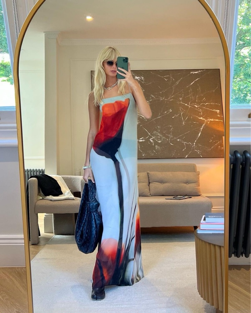This stunning maxi dress features a bold floral print in a beautiful color palette. Perfect for a summer wedding or garden party.