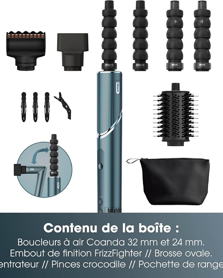 Shark hair dryer with attachments for traveling to countries with 220v (Europe, Asia, Africa, South America, Australia)! Type C plug that can be used with an adapter for other 220v outlets. Cannot be used within the US. Discounts available for trips longer than a week :)