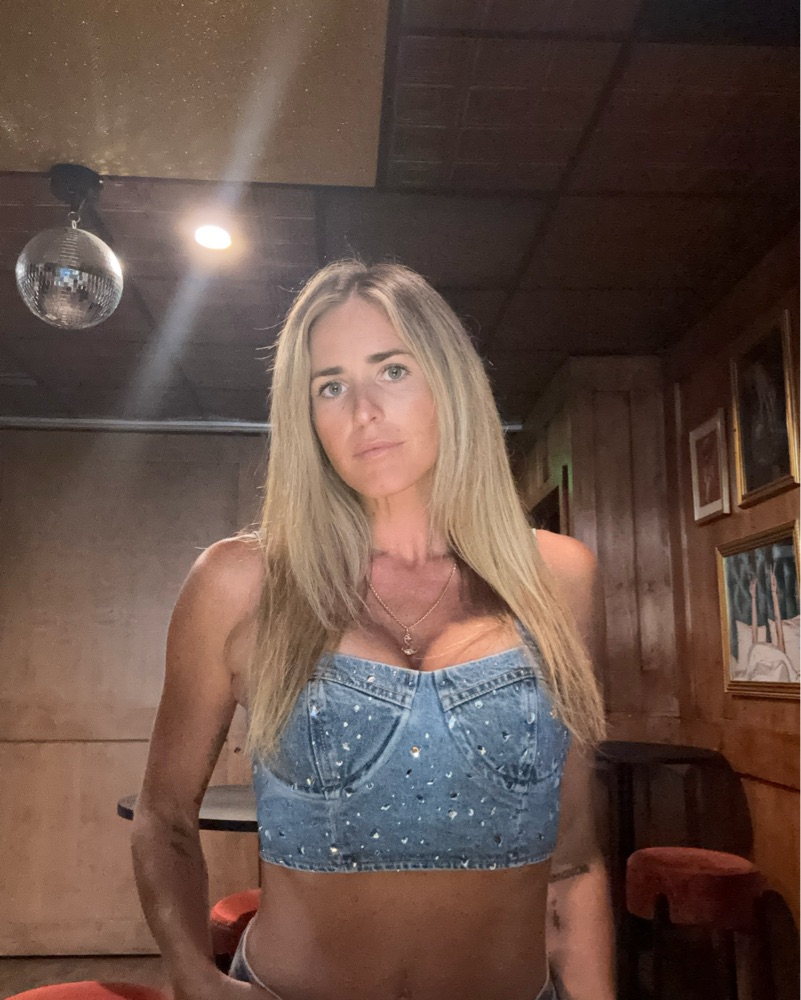 Denim bedazzled bustier top! I bought this in January and I’ve only worn it twice so it’s in good condition! It’s a set which I love too! Fun for concerts or parties.