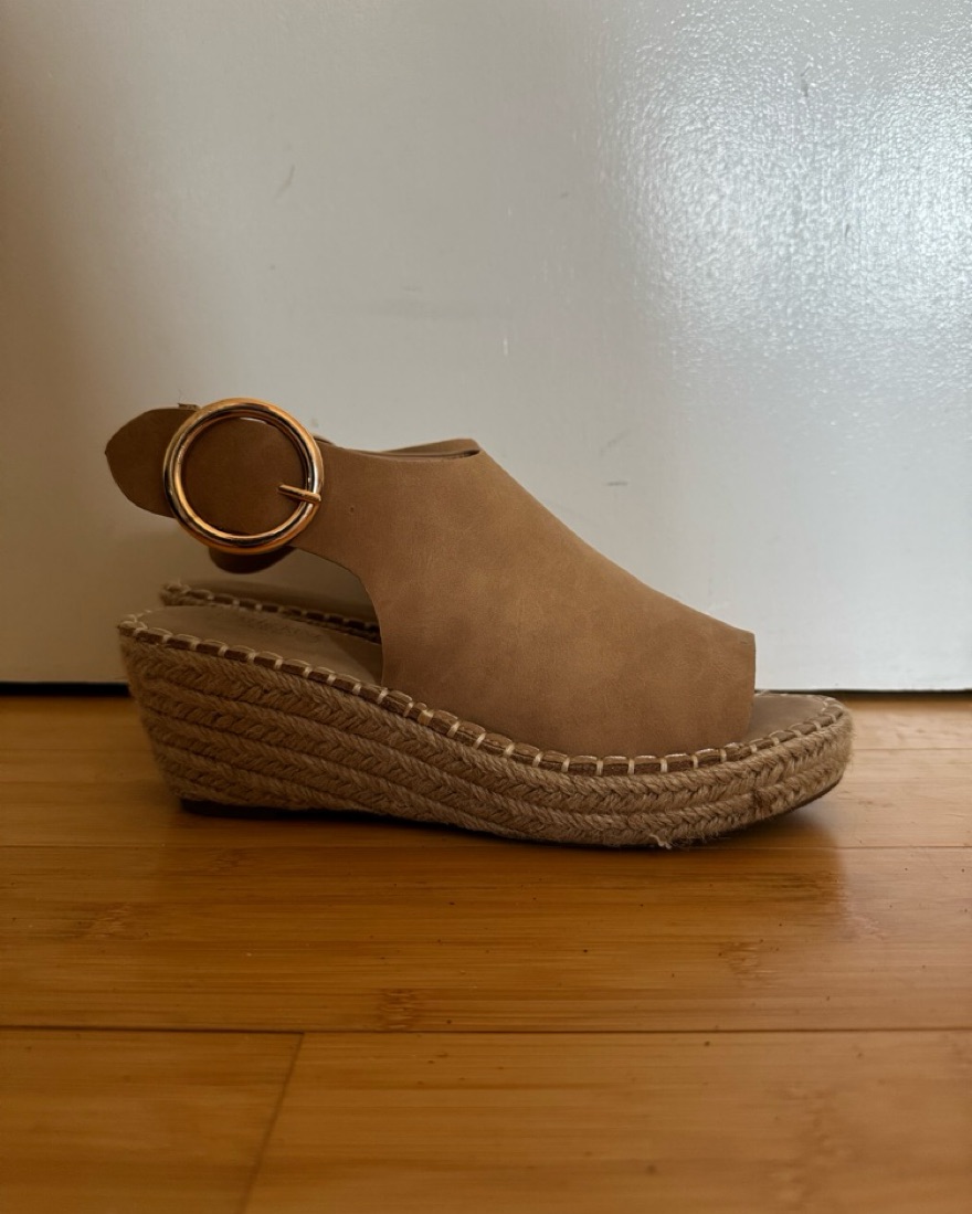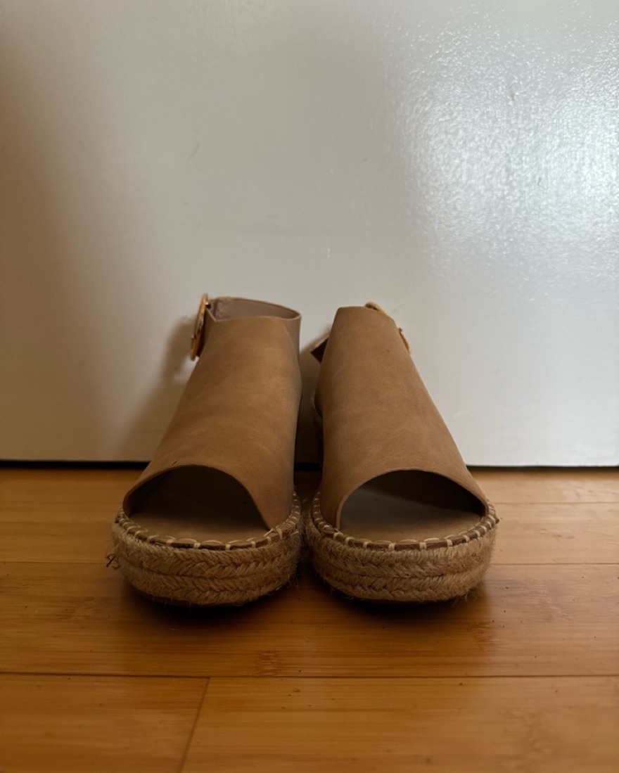 Lightly used in excellent condition beige wedges. These shoes are comfortable and excellent for any spring/ summer outfit, or even a european gateaway.