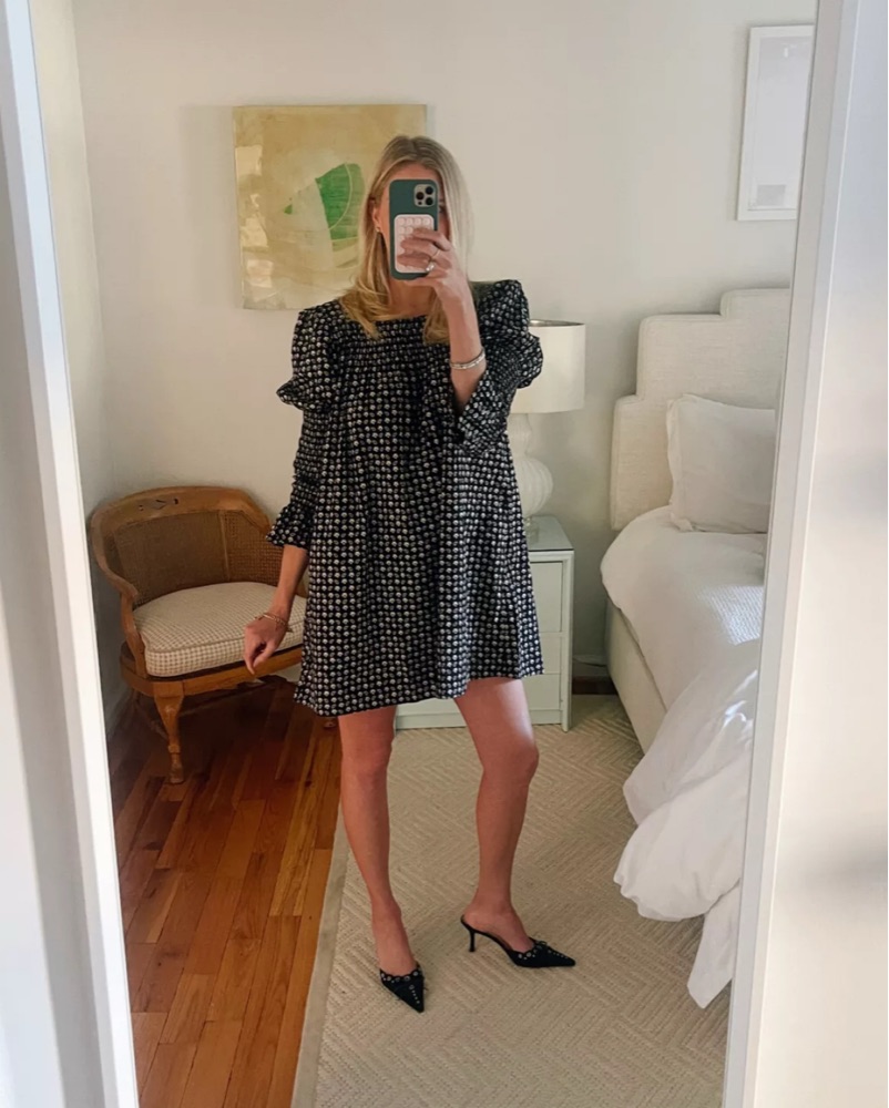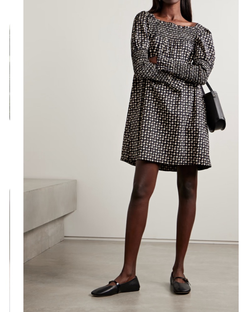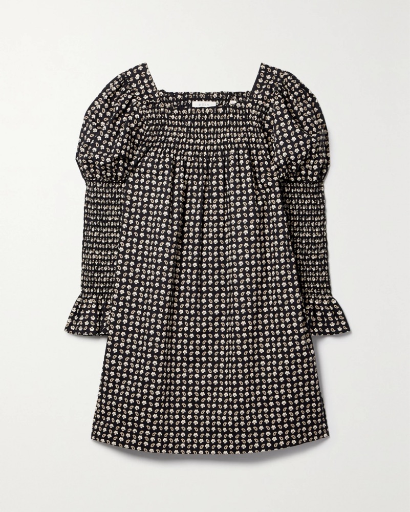 DÔEN's ‘Sabia’ mini dress embodies the brand’s love for feminine silhouettes and vintage-inspired prints. Made from certified organic cotton-poplin, it has a shirred square neckline and puffed Juliet sleeves, while the body is left to fall loosely over your figure.
