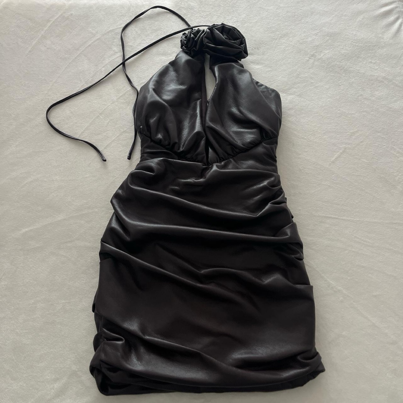 BITTER CHOCOLATE VEGAN LEATHER MINI DRESS size XS.