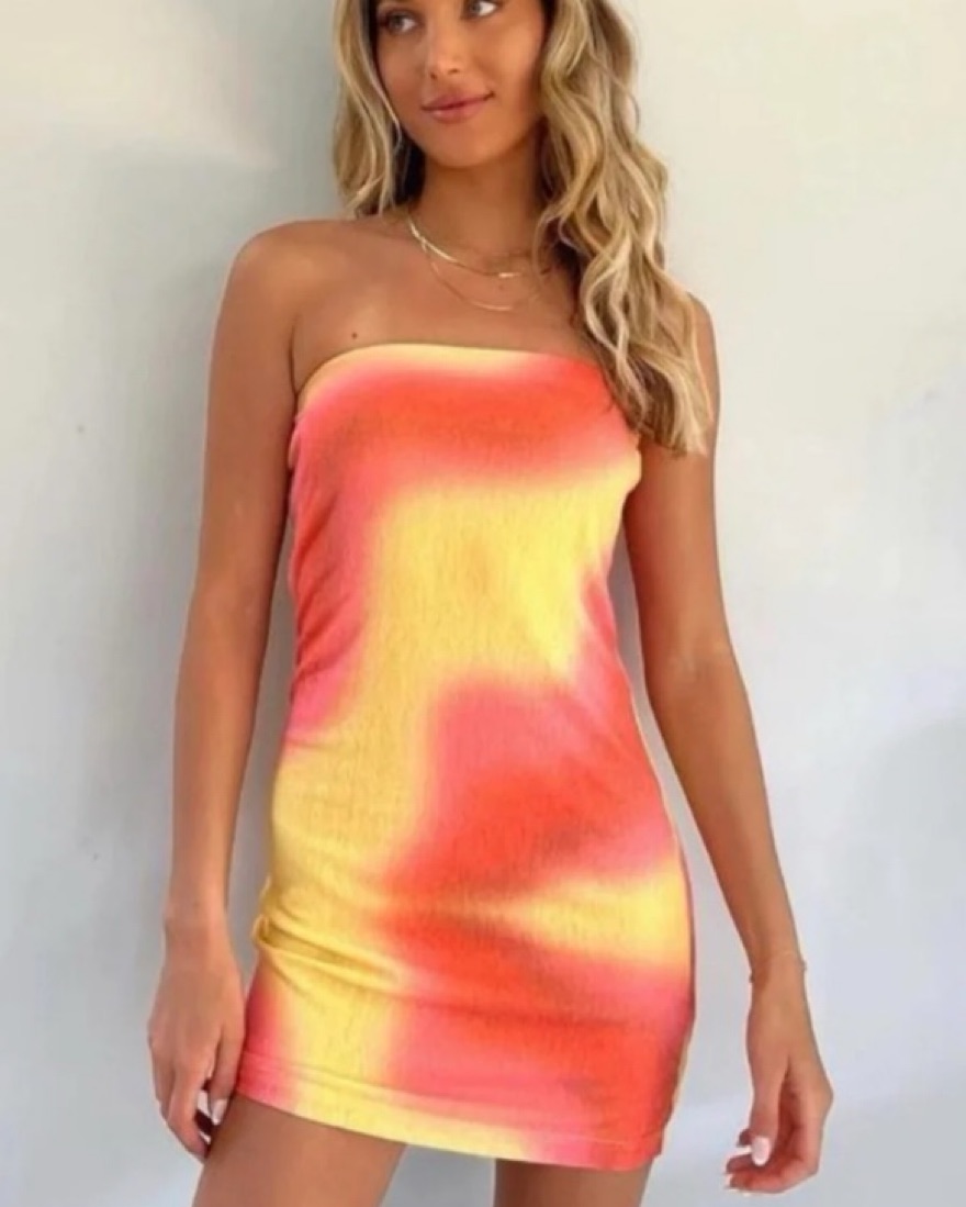 Strapless Mini Length Loose fitted style Elasticated band on bust Lined