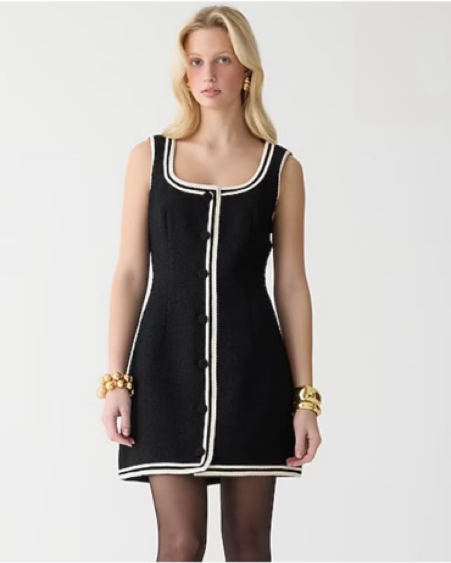 This style comes with standout contrast trim details and fabric-covered buttons down the front.